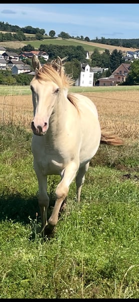 Wunderschöne Goldfarbene Stute vom 21.07.24. Sie wächst robust in der Stutenherde auf. Im täglichen Umgang ist sie Menschenbezogen und respektvoll. Ihre schnellen und top ausballancierten Bewegungen machen sie zu dem perfekten Allrounder. Sie kennt Autos, Traktoren, Kinder, Radfahrer, Kühe uvm. Sie suchen ein robustes, Kompaktes Pferd, dann ist sie die Richtige. Ihre Mutter ist eine Spanische Mustangstute x Sorraia. Ihr Vater ein kompakter Freundlicher Quarterhorse Hengst Anschauen lohnt sich. Alles weitere gerne am Telefon. Sie suchen das Besondere, dann ist die Richtige