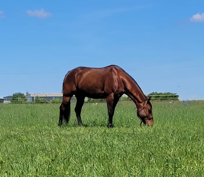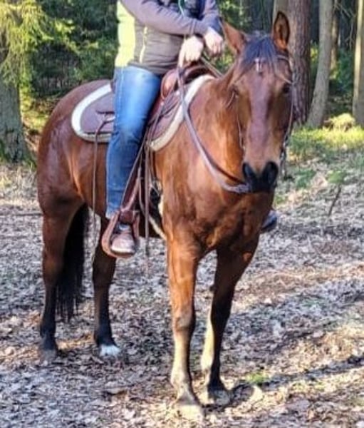 Description LDR Two Eyes Gunsmoke - Foal Premium lb (7.5) Type: Warmblood Gender: Gelding Age: 10 Height: 152cm Color: Bay (Chestnut) Solid Main Discipline: Leisure Further Features: - Very good pedigree - Lunged - Worked on the ground - All-rounder - Loading-friendly - Shoeing-friendly - Equine passport available - Free from eczema Selling 10-year-old American Paint Horse gelding (Western) We would like to find a good home for our beautiful Smoky. Since we now have three riders in the family, the situation is not optimal. All three of us ride him, mostly together with our second Quarter Horse. However, it would be desirable and better if he had a dedicated person. He is a great partner in Western riding but needs an experienced rider who can do him justice, provide leadership, and thus convey safety and calmness, further promoting his strengths. Experience in cattle work is available. Short Summary: - 10 years old - Well-trained in Western riding - Weekly training with us under an experienced trainer - Friendly, calm character Details: Videos available upon request Equipment can be purchased additionally Location of the horse is in 92342 Kiesenhof A viewing and trial ride is possible by arrangement No veterinary examination available. If you are interested in this wonderful horse and have the necessary experience, we look forward to hearing from you or just give us a call. Home before price If it fits