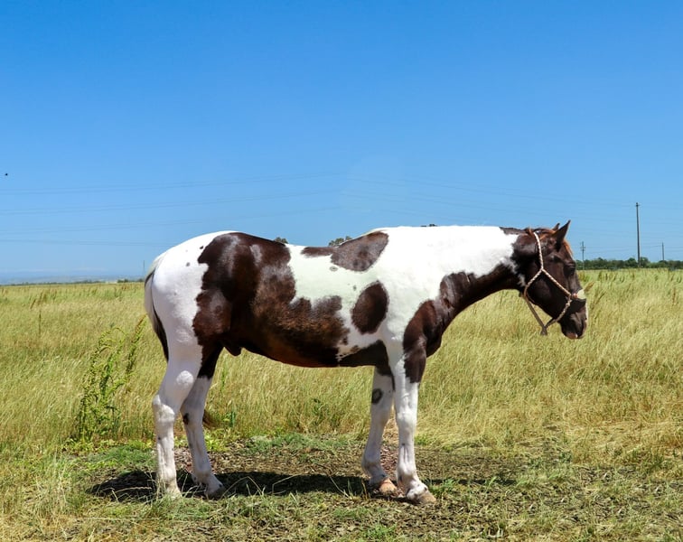 ONLINE AUCTION Place your bids at www.PlatinumEquineAuction.com Starting Bid $3500 Auction ends June 9th, 2024 Need a new saddle? Check out White Rock Saddles on our website or Facebook! Meet Badger: The Perfect Blend of Beauty and Brains! He is a grulla paint, 12 year old that stands 15.1 hands. Are you in search of a horse that combines stunning looks with an exceptional temperament? Look no further! Badger is a magnificent equine that will not only turn heads with his striking appearance but will also impress you with his intelligence and versatility. This remarkable horse has been a reliable partner in a variety of settings and is ready to bring joy and adventure to his new owner. Badger is an absolute gentleman on the trails. He is as sure-footed as they come, confidently navigating through any terrain you can imagine. Whether you’re traversing muddy paths, crossing creeks, splashing through ponds, or tackling rocky landscapes, Badger handles it all with ease. He goes up and down hills effortlessly, making him the perfect trail companion for any rider. Plus, he has a genuine love for playing in the water, making every trail ride an adventure. In the arena, Badger is a true expert. He knows his leads, has a fantastic stop, and offers a smooth, easy trot that makes riding a pleasure. Whether you’re practicing for a competition or just enjoying a leisurely ride, Badger’s responsiveness and skill make him an excellent partner. His familiarity with obstacles like tarps, smoke bombs, and flags means he remains calm and composed. Badger has been exposed to an array of environments and situations, making him incredibly adaptable. He’s accustomed to the hustle and bustle of heavy equipment, dogs, quads, dirt bikes, and bikes. Traffic, honking horns, and even the roar of semi-trucks do not phase him. Badger has been ridden through city streets and neighborhoods, calmly handling rushing cars, curious pedestrians, and kids playing basketball. His nature makes him an excellent choice for riders who want to explore both rural and urban settings. Badger has a special fondness for children and loves the attention they give him. He is a perfect gentleman around kids, making him an ideal family horse. His patient and gentle demeanor ensures that even the youngest riders can take him for a spin. He’s been used for lessons and handles them with grace. Badger is as easy-going as they come. His “in your pocket” personality means he loves to be around people and enjoys being loved on. He’s a joy to ride and be around, making every moment spent with him a pleasure. Whether you’re a seasoned rider or a novice, Badger’s sweet nature and cooperative spirit make him an ideal companion. He is also UTD on shoes, worming, shots and in shape and ready to hit those trails. He loads in a trailer with ease, stands tied, goes alone or in a group, stands to be saddled, bathed, fly sprayed, for farrier. Is great with other horses or alone , stall or pasture, he’s easy to catch as well. Badger is a rare find – a horse that combines beauty, brains, and an exceptional temperament. His versatility and reliability in a wide range of settings make him a standout choice for anyone looking for a truly special equine partner. Don’t miss the opportunity to make Badger a part of your life. Contact KW Ranch 530-852-2032 to meet this extraordinary horse we call Badger! ONLINE AUCTION Place your bids at www.PlatinumEquineAuction.com Starting Bid $3500 Auction ends June 9th, 2024 Need a new saddle? Check out White Rock Saddles on our website or Facebook!