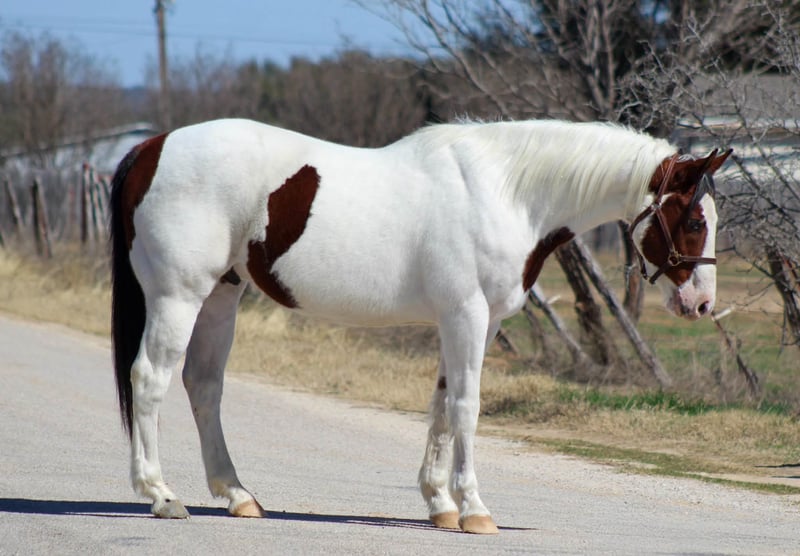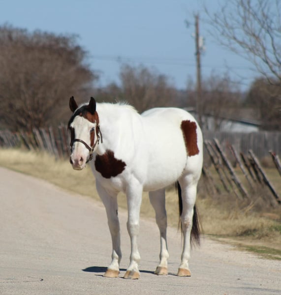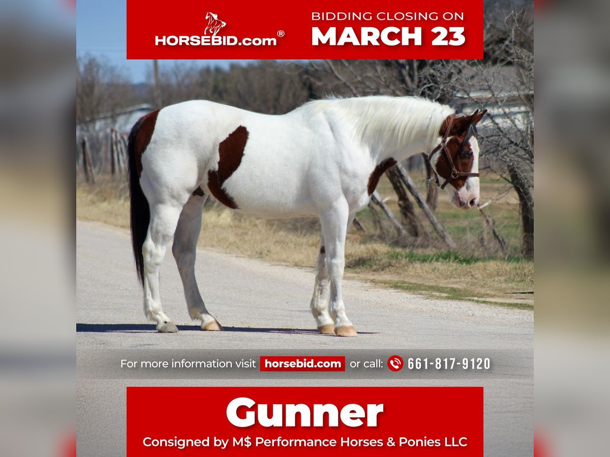 ⚜️𝓽𝓱𝓮 𝐆𝐎𝐋𝐃 𝓢𝓮𝓵𝓮𝓬𝓽⚜️ Happening now thru MONDAY | MARCH 23rd - Available EXCLUSIVELY on HorseBid's website! For more details and to register visit: www.Horsebid.com CONSIGNOR CONTACT: M$ Performance Horses & Ponies LLC 661-817-9120 LOCATION: Whitesboro,TX BREED: Paint Horse REGISTERED: No REGISTERED NAME: Gunner COLOR: Bay and white overo HEIGHT: 15 AGE: 15 GENDER: Gelding Gunner is a 15 year old paint gelding standing 15 hds tall and boy is he flashy with his unique markings. He is one that’s going to stand out! Gunner has covered serious country — miles and miles of trails, different states, camping trips, rough terrain, water crossings, rocky climbs, thick brush — you name it. He’ll ease along on a loose rein, happily walk all day, or step into a trot or lope if you want to cover ground. He crosses water without hesitation (he loves to splash around in the water), steps over logs, crosses bridges, and handles new places with a steady mind. He’s even taken in the sights and sounds of the historic Fort Worth Stockyards without missing a beat. In the arena, he keeps it simple and solid — easy neck rein, smooth transitions, and a stop that’s dependable. Nothing fancy, just broke the way one should be. He’s user friendly and easy to ride not one you need a handbook on. He stands tied, good for the farrier (currently barefoot ), loads and unloads easy. We are open to anyone interested in him to schedule a time to come see him or if you can’t make it schedule a FaceTime showing to see him. If you need help with transport don’t hesitate to ask we have a list of reputable haulers that can get him safely to your doorstep WORLD WIDE including, Alaska , Mexico, Hawaii, Canada and anywhere in between.