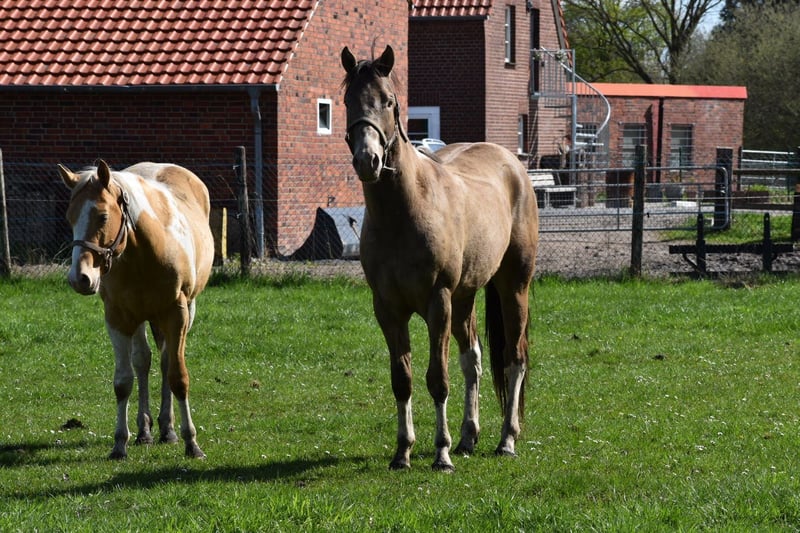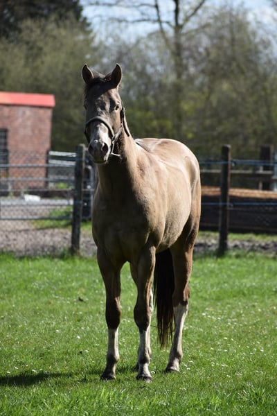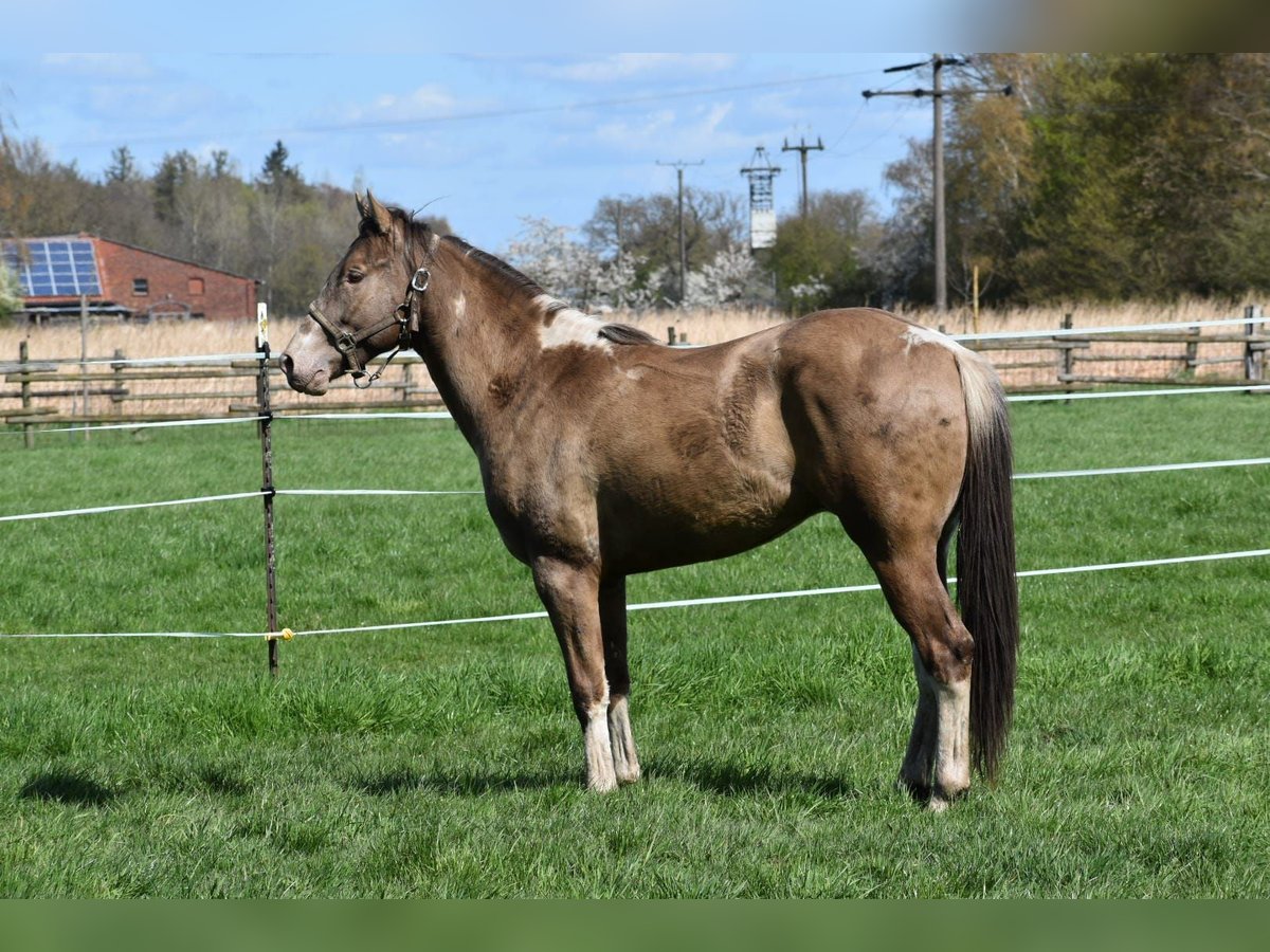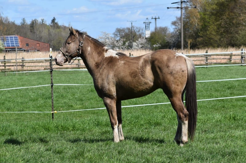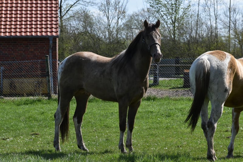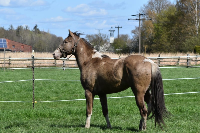 Paint Horse Wallach Classic Champagne Tobiano - Buttons Dark Dragon- 2 Jahre ( 30.01.2024) Stm.z.z. ca 155 cm ( endm. Ca 160 cm +-) 7 panel N/N - Allround gezogen - Abstammung in den Bildern Sire: DD CHAMPAGNE BUTTON DAM : FR PERCYS PEARLINE/ QTS MUSIC MAN DRAGON ist brav im Händling, kennt das übliche was er kennen sollte, im Sommer im Sauerländer weiden in einer Hengst/Wallach Herde, kann wenn interessant auch diesen Sommer wieder mit dahin. Also bisher durfte Er erwachsen werden und seine Jugend genießen. Wer ihn kennen lernen möchte und sich seinen neuen Partner selbst ausbilden möchte kann ihn gerne kennenlernen. Standort: 59387 Ascheberg