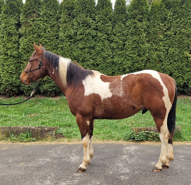 SW MONTY MAGIC MOON – Paint Horse Wallach (3 Jahre) Zum Verkauf steht ein hübscher 3-jähriger Paint Horse Wallach solider Abstammung. Er ist seit 3 Monaten im Profi-Beritt. Unter dem Reiter zeigt er sich brav und unkompliziert und beherrscht alle drei Grundgangarten (Schritt, Trab und Galopp). Der Wallach überzeugt durch sein freundliches Wesen, seine Lernbereitschaft und sein angenehmes Temperament. Monty bringt eine solide Basis mit und kann nun individuell weiter gefördert werden. Durch seine unerschrockene Art wird er sicher ein guter Partner im Gelände oder auch für die Disziplin Ranch Riding. Abstammung: Vater: Apache Moon Power Mutter: Magic Marylin Er ist gesund, regelmäßig entwurmt, beim Schmied und dem Alter entsprechend entwickelt. Leider ist er PSSM Träger und wird daher günstiger abgegeben. Er kennt Offenstallhaltung. Bei Interesse oder für weitere Informationen gerne melden!