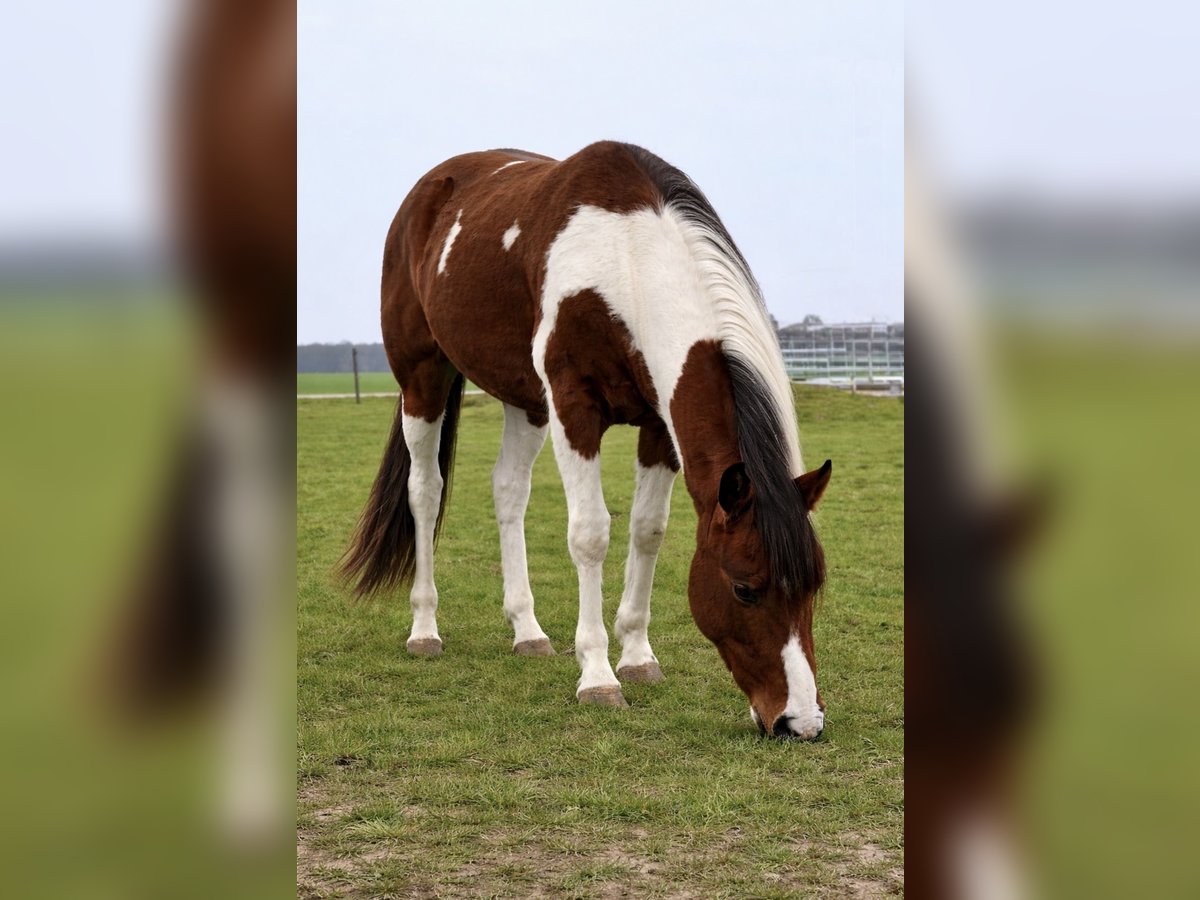 A charming 3-year-old Paint Horse gelding is available for sale: * Healthy * No genetic defects – comprehensive n/n testing (Panel 8: PSSM1, PSSM2, GBED, HERDA, OLWS, MH, HYPP, IMM) * Foal class winner at breed shows * Awarded breeding premium * Beautiful long, two-tone mane * Correct conformation * Currently stands at 14.6 hh **Pedigree:** He is a direct son of the well-known Paint Horse *Doolins Candy Bar*, who is also recognized from Jens Wessels' fire shows. His calm, steady temperament is clearly passed on to his offspring. His dam is also a characterful horse. She is absolutely trail-safe, proven in stormy weather, and handles every trail course with confidence and ease. Don combines the best qualities of both lines: nerve strength, calmness, and willingness to perform. He offers ideal prerequisites both for competition and as a reliable leisure horse. **Character & Training:** Don has been raised and trained from a young age according to the principles of Natural Horsemanship. He has a solid foundation in calmness and everyday handling (including tarp, flutter tape, road training, trailer loading). He consistently demonstrates bravery, curiosity, and composure. He handles loading and riding independently and stress-free. In many situations where other horses might be unsure, he remains calm and exhibits extraordinary composure, making him suitable for children or young riders with proper support. Already showing himself as a truly dependable partner with an excellent mindset: * Very calm, well-behaved, and balanced * People-oriented and reliable * Willing to go alone on a lead in the terrain * Not "clinging," independent of other horses * Extremely cool and nerve-strong in daily handling * **"Willing to please"** – eager to work and make his handler happy **Exterior:** Don impresses with his correct, harmonious conformation, impeccable limb alignment, and overall very appealing appearance. **Special Features:** Don is a real eye-catcher with top character – a horse with a bright future, whether in leisure riding or competition. Please feel free to contact us for more information or if you have any questions!