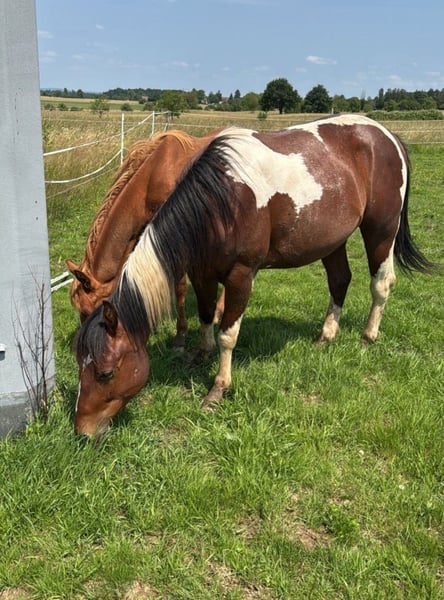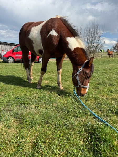 SW Monty Magic Moon ist ein bildhübscher Paint Horse Wallach, geboren im April 2023. Er ist bay tobiano mit einer markanten Zeichnung und wird voraussichtlich ein Endmaß von etwa 150 cm erreichen. Er besitzt volle APHA-Papiere und überzeugt durch ein korrektes Gebäude, ein gutes Fundament mit starken Knochen sowie eine kräftige, gut bemuskelte Statur. Der Wallach wächst artgerecht im Herdenverband auf, kennt Tierarzt und Hufschmied und ist geimpft sowie regelmäßig entwurmt. Er ist halfterführig und beherrscht das komplette Fohlen-ABC. Charakterlich zeigt sich SW Monty Magic Moon verspielt, neugierig und sehr menschenbezogen. Er ist brav im Umgang, dabei frech und charakterstark, stets lernwillig und ein echter kleiner Quatschkopf, der alles untersuchen und ausprobieren möchte. Seine Aufgeschlossenheit und Intelligenz machen die tägliche Arbeit mit ihm besonders angenehm. Mit seinen bewegungsstarken Gängen und seiner soliden Allround-Abstammung wird er ein zuverlässiger und vielseitiger Partner für die Freizeitgestaltung, bietet aber ebenso interessantes Potenzial für Reiter mit Turnierambitionen, insbesondere im Bereich Trail.