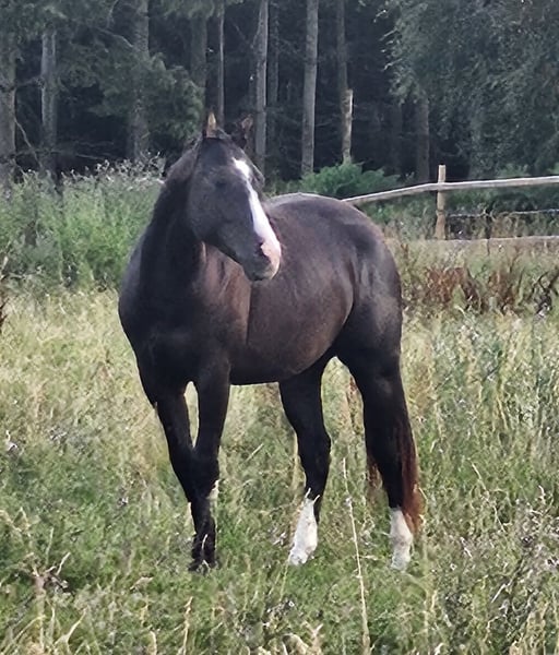 Wallach Alter geb.5/23 Rasse: American Paint Horse Fellfarbe: Black solid Größe: ca. 152cm /Ausbildungsstand dem Alter entsprechen, anlongiert, Wallachherdenhaltung, kein Training halfterführig, angebunden zum putzen, gibt Hufe, kennt Schmied und Tierarzt vom impfen. Preis auf Anfrage Weitere Infos: Tel: 02403 29110