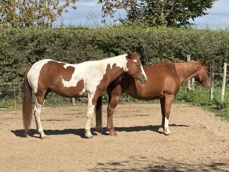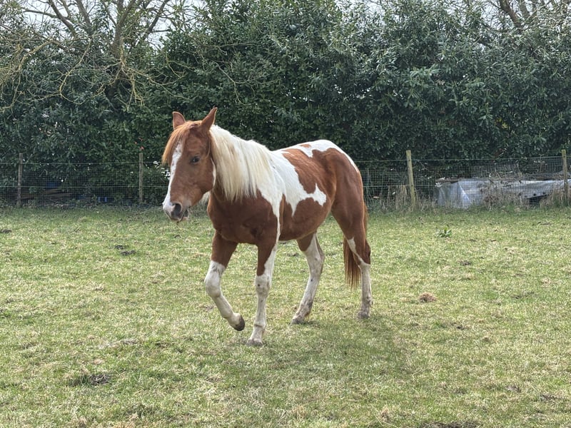 🌟 Mace – 2.5-Year-Old Tobiano Gelding with Great Mind and Presence Meet Mace, a 2.5-year-old (03-05-2023) Tobiano Chestnut gelding with a lovely personality and solid foundation. He was born and raised here and still lives happily with his dam and two other horses. Mace is about 149 cm now, he will grow a few centimeters. Mace was weaned gradually and stress-free at 9 months and gelded later on. He has grown up in a natural environment — an open stable with paddock and pasture turnout. He’s never been stabled in a box and truly thrives in a 24/7 turnout setting where he can move freely and enjoy life as a young horse should. In the herd, Mace is calm and respectful, though he loves to play and would enjoy having an active companion. Mace is now ready to find his person — someone who will dedicate themselves to him and guide him with patience and knowledge. He needs a confident, experienced handler or rider who understands young horses, or someone willing to work with a good trainer to bring him along. He is currently in professional training, appropriate for his age. Mace goes out on solo walks with his trainer and handles new situations very well. He is light in the hand, smart, and quick to learn. He knows fly spray, enjoys being hosed off, respects personal space, leads quietly on a loose rope, moves his shoulders and hindquarters, and picks up his feet politely. In the herd, Mace is slightly dominant — second in rank after his dam (in a group of four). He’s curious, friendly, and always comes to greet you in the field. He has a strong character and his own opinions, but he’s not difficult — just intelligent and full of personality. Genetics & Papers: 5-panel negative by parentage Sire: Rolex Sparklin Pine (7-panel negative) Dam: April Secret Moonfire (5-panel negative) Registered with the APHA and holds a Dutch passport Mace is a bright, good-minded young horse with all the right ingredients for someone who wants to build a genuine partnership from the ground up. He’s ready to grow, learn, and make his future person very happy. Location near Maastricht, south of the NL, near Aachen. Mace can stay with his dam and friends until the right match comes along. You can write to me in Dutch or English.
