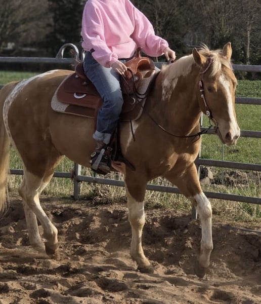 Absoluter Goldschatz zu verkaufen in Sonderfarbe Direkter Sohn von Indians Bigstep Zum Verkauf steht ein 3 jähriger angerittener Paint Wallach (4 Monate Profi beritt) kann Grundgänge Schritt/Trab/Galopp und Rückwarts Lasst sich fur das Alter sehr fein lenken und ist nie Kopflos. Er deckt mit seinen 1,60 cm auch große Reiter gut ab. Keine Unarten wie Buckeln oder losrennen. Ein super solides Grundtempo (bringt er von allein ein und muss man nicht einfordern) Ist in meinem Besitz seit seiner Geburt und stammt aus der Renommierten Klus Quarter Zucht. Volles Amerikanisches Papier! Wird nur so günstig abgegeben da er ein 5 Sterne Zuhause sucht und ich aus gesundheitlichen Gründen nichtmehr Reiten darf. Ihn stehen zu lassen ist mit seiner Arbeits Motivation leider nicht machbar. Er sollte schon 4-5 mal die Woche beschäftigt werden. Gerne ambitionierte Freizeit Reiter oder auch gerne im Turniersport Er ist super verschmust und sehr lieb aber durch sein Alter nichts für reine Anfänger da er auch gerne viel gearbeitet wird (ist immer nett, möchte aber viel Bewegung) Jungpferde Erfahrung ist da schon von Vorteil Spaziergänge auch alleine kennt er und liebt er (Ausgeritten wurde er noch nicht) Sattel der vor 2 Monaten gekauft wurde kann mit gekauft werden für einen fairen Preis (Bobs Fappani) Aufpreis 3000€ Dies ist kein Notverkauf und eine Einmalige Gelegenheit eine sonderfarbe zu bekommen Wird nur in beste Hände abgegeben Papiere können bei Interesse geschickt werden Ranch Horse gezogen +49 155 62541739 Bei Interesse kann man mir gerne schreiben
