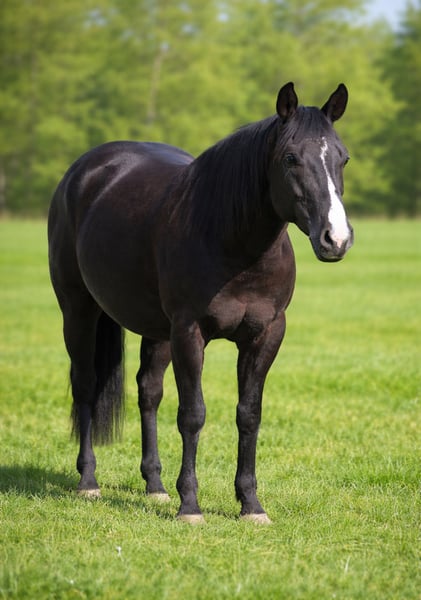 Casco nero lucido, un cavallo Paint molto obbediente e affidabile, stallone