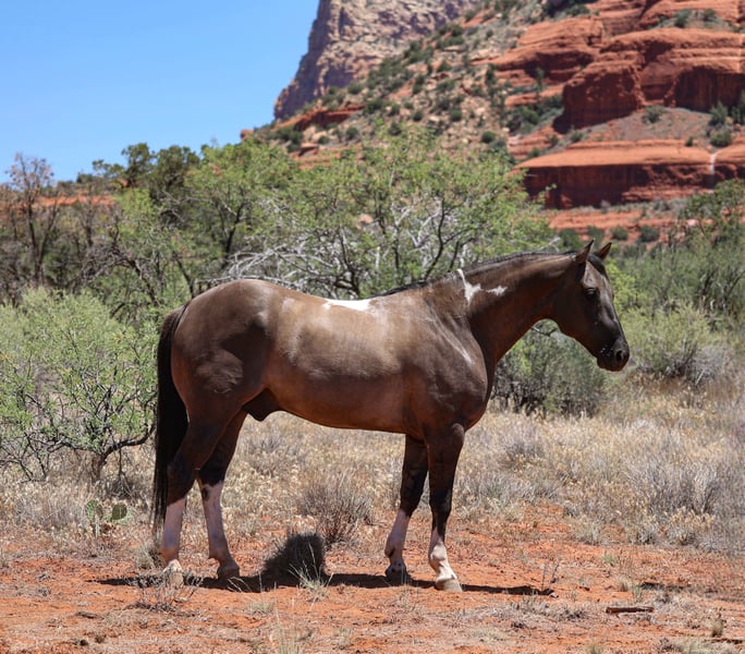 ⚔️ The HORSEMAN's Select ⚔️ Happening now thru MONDAY | JULY 28th - Available EXCLUSIVELY on HorseBid's website! For more details and to register visit: www.Horsebid.com CONSIGNOR CONTACT: DD Equine 928-202-0448 LOCATION: Camp Verde, AZ BREED: American Paint REGISTERED: Yes REGISTERED NAME: Shadows Preacher COLOR: Grulla paint HEIGHT: 15 AGE: 5 GENDER: Gelding “ Shadows Preacher “ known as Preacher is a registered APHA 5 year old! If your looking for an outstanding bred gelding that has the looks, the brain and a kind demeanor Preacher is the horse you have been looking for! Preacher has been ridden all over the rough country of Arizona, he is sure footed, walks out on a loose rein and has no spook. If you’re looking for a confidence builder that stays quiet and calm out on the trail you can’t go wrong with Preacher. We have had all level of riders on him and he just follows along while in a group, ride him out alone or in a big group and Preacher will stay the same level headed guy he is! Preacher has a puppy dog personality and really enjoys being around people. We have never had Preacher get fresh or sour. He currently is stalled but does play well with others in pasture, he is an easy keeper and is 100% sound. He loves to be groomed, he is great for the farrier, loads in a trailer easy and is quiet while tacking up. Preacher has a fancy, slow lope, if you’re older and need a smooth ride Preacher is your guy! He has a nice jog, trot and lope, he neck reins, side passes, has a big and soft stop, and has a nice turn around! He catches both leads, you can ride him two handed or one! He has smooth roll backs and is a joy to ride and play around with in the arena! Preacher has been roped off of a handful of times outside on the ranch and started in the arena! He is cowy and would make a phenomenal rodeo prospect! Preacher is bred to be in the show pen and it wouldn’t take long to get him there! He has all the training!!! Preacher also wouldn’t mind being a family horse and riding out on the ranch or in town! He can care less about busy traffic, barking dogs or bags. He is a super fun and an out going horse! Give him a ball to play with and he will keep busy all day! If you have any questions about Preacher don’t hesitate to call or text! Preacher comes with a full clean lameness exam, health and coggins.