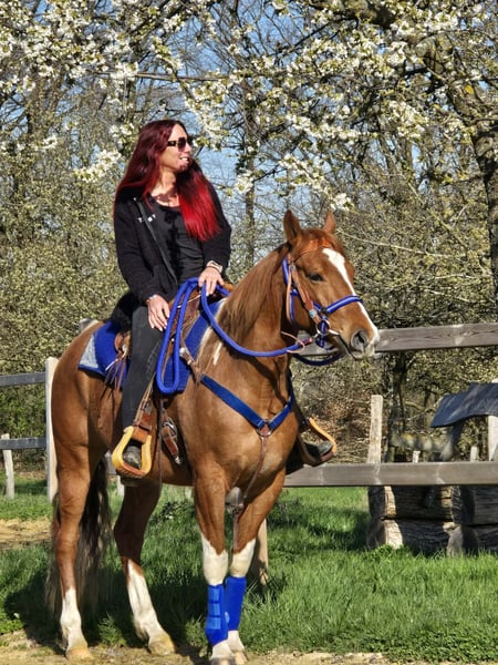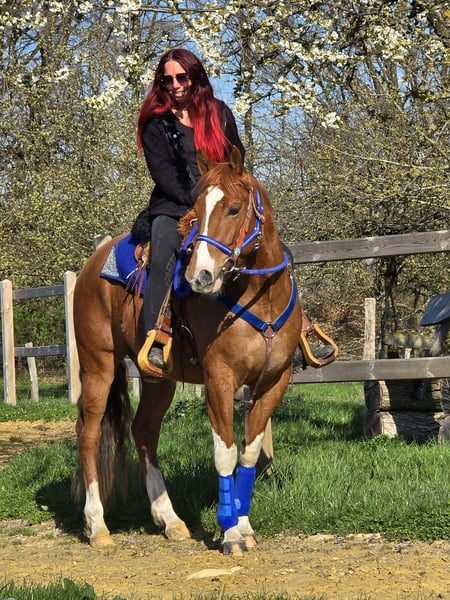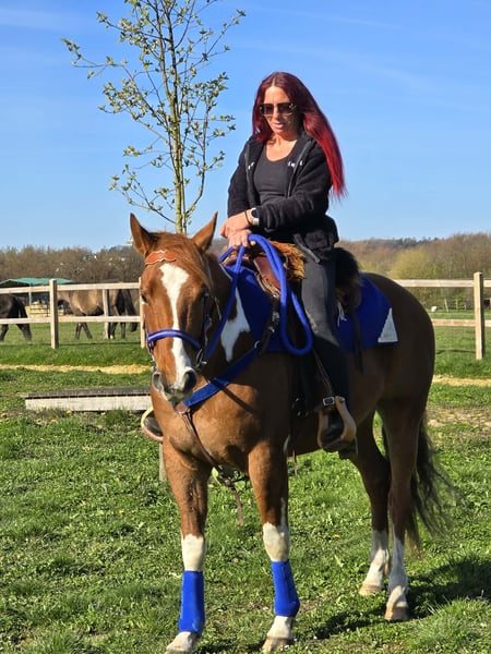Calypso – a horse that immediately captures your heart This charming Paint cross gelding (born 2021) with striking chestnut and white coat combines charisma, character, and quality in a particularly beautiful way. With his strong, harmonious build and distinctive markings, he is a real eye-catcher. But he impresses not only visually – his friendly, open nature makes him a pleasant partner in daily handling. Calypso has been ridden and proves to be reliable, balanced, and consistently motivated. His calm nerves make him a horse that remains composed even in new situations, providing confidence to his rider. Whether alone or in a group – he is well-behaved and uncomplicated in the terrain and enjoys working together. He is accustomed to turnout in an open stable and gets along very well with it. Thanks to his versatile aptitude, many paths are open to him – whether as a reliable leisure partner, for relaxed trail rides, or for further development in various riding disciplines. Paint cross gelding, born 2021, approx. 1.55 m, with veterinary health certificate Chestnut and white Name: Calypso, 5 years old. €6,900 Ridden Reliable & balanced Trail-safe, even alone Nerve-strong Accustomed to turnout in an open stable Harmonious, strong build Versatile use A young gelding with charisma, character, and great potential – a true partner for the future. Care & Handling: – Regular deworming – Shoeing maintained – Osteopathic care Additional offers: Western saddles, bridles, and other accessories available. Service: – Transport can be arranged – 3-month exchange guarantee Test ride: – €35 (each additional horse €25) – Credited on the day of purchase Price reduction for immediate pickup or same-day transport: – Category 1: €100 – Category 2 (from €5,000): €250 Phone: 0171 – 4001968 Available daily from 8 a.m. to 8 p.m. No emails or WhatsApp messages All information without guarantee