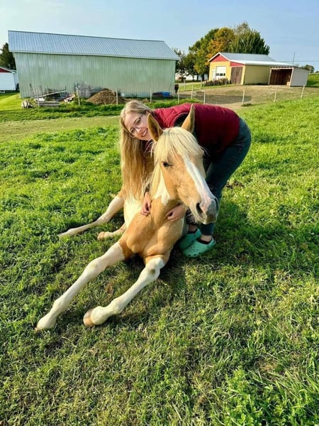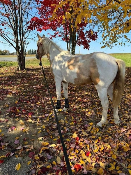 Meet this absolutely stunning Palomino Pinto Mare – a true head-turner with beauty and brains! With her eye-catching golden and white markings and a flowing flaxen mane and tail, she commands attention wherever she goes. But her appeal goes far beyond her gorgeous looks. This lovely mare boasts excellent basic gaits – smooth, comfortable, and a joy to ride, making every stride a pleasure. Her likely stock horse lineage (suggesting an American Paint Horse background) gives her the inherent athleticism, intelligence, and willing temperament to excel in a wide array of disciplines. Whether you dream of gliding through a Western Pleasure pattern, confidently navigating obstacles in a Trail Class, or showcasing her agility in Ranch Riding, she has the natural talent to shine. She also possesses the potential for Reining maneuvers, showcasing quick turns and responsive stops. Beyond the show ring, her calm and sensible nature makes her an ideal partner for leisurely trail rides or simply enjoying quiet time in the arena. She's the kind of versatile horse that can truly be an all-around mount, adaptable for both aspiring youth and experienced amateur riders. If you're looking for a mare with striking looks, comfortable gaits, and the ability to excel in diverse roles, this Palomino Pinto beauty is truly exceptional. Don't miss the chance to welcome such a talented and versatile companion into your life!