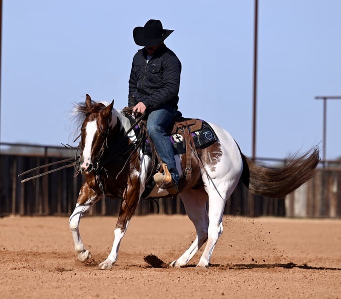 🌟𝑨𝒑𝒓𝒊𝒍 𝐀𝐋𝐋 𝐒𝐓𝐀𝐑 𝐋𝐈𝐍𝐄𝐔𝐏🌟 Happening now thru MONDAY | APRIL 6th - Available EXCLUSIVELY on HorseBid's website! For more details and to register visit: www.Horsebid.com CONSIGNOR CONTACT: Coyote Hollow Ranch LLC 209-342-7061 LOCATION: Waco, TX BREED: APHA REGISTERED: Yes REGISTERED NAME: VALENTINES JUSTINTIME COLOR: Sorrel Tobiano HEIGHT: 14.1 AGE: 6 GENDER: Gelding Dice — roll the right one every single time. Dice is a 2020 APHA gelding, bred to work and built to perform: This One Time x Smartlittlevalentine x JR Red Diablo. If you’re looking for a Paint gelding that turns heads and backs it up with real ability, Dice checks every box. Dice has been shown successfully in the Open Cow Horse during the 2024 and 2025 seasons, and has marked 219s down the fence. He is Non Pro and lower-level Open suitable, making him a great fit for a wide range of riders looking for talent without hassle. In the arena, Dice is a huge stopper with a smooth, correct turnaround that gets noticed. He’s confident and honest in the boxing and reads a cow naturally down the fence, staying hooked and consistent the entire run. He’s smooth, correct, powerful, and genuinely fun to show. Show highlights include: Reserve Champion – Level 1 Open Derby, Wild Rag Classic 2025 – Top 5 – APHA World Show 2025, Junior Cow Horse. Outside the arena, Dice is just as solid. He’s been roped the sled on, drug calves, used extensively in the sorting pens, and gathered cattle in the pasture. He’s dependable, gritty when needed, and understands a day’s work. No drama—he shows up the same every ride. Despite his ability and cow sense, Dice is easy to get along with, kind, and forgiving. He’s the type that builds confidence in his rider while still having plenty of gear for the show pen. He requires no special maintenance and is straightforward to keep and ride. Dice is that rare combination: pretty, broke, cowy, gentle, and useful. Whether you’re headed to the cow horse pen, working cattle, or just wanting a high-quality, trustworthy gelding, Dice is the kind you’re proud to own and ride. If you want to load the dice in your favor — Dice is the one. (209)-342-7061 X-rays and vet exam attached.