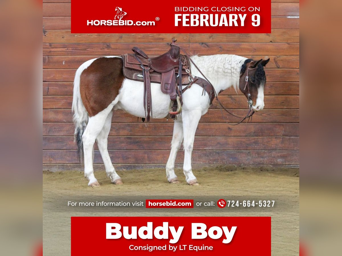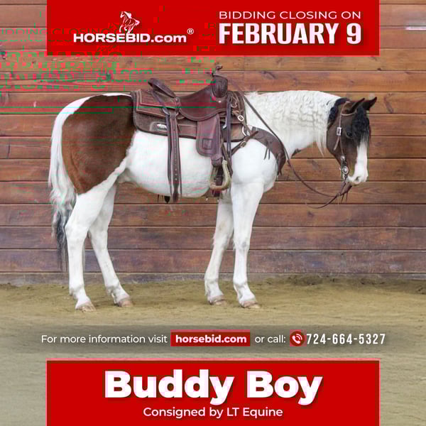 ❤️🔥𝑩𝒆 𝑴𝒊𝒏𝒆 𝐒𝐄𝐋𝐄𝐂𝐓❤️🔥 Happening now thru MONDAY | FEBRUARY 9th - Available EXCLUSIVELY on HorseBid's website! For more details and to register visit: www.Horsebid.com CONSIGNOR CONTACT: LT Equine 724-664-5327 LOCATION: Miola PA BREED: Grade paint REGISTERED: No REGISTERED NAME: Buddy Boy COLOR: Tri Color Paint HEIGHT: 14.1 AGE: 6 GENDER: Gelding Buddy Boy — Proof That the Best Horses Aren’t Picked by Color ✨ If you’re shopping for a horse based on talent, temperament, and heart (instead of just a trendy flashy color), stop scrolling—this is your guy. Buddy Boy is a 6-year-old tri-colored Paint gelding, standing a handy 14.1 hands, with clean legs, a cute face, a long mane, and a true puppy-dog personality. He genuinely wants to be everyone’s friend and approaches life with curiosity, and confidence, not fear. Scary things? Not really his thing. Buddy is the kind of horse that: ✔️ Tries his heart out—even when he’s learning something new ✔️ Is gentle, forgiving, and patient with beginner riders and mistakes ✔️ Takes care of his rider instead of reacting to them ✔️ A confidence-boosting ride ✔️ A horse that takes care of his rider ✔️ One that goes where you point him and doesn’t overthink life ✔️ A partner you can trust, not just admire from the ground He’s been there, done that, and isn’t phased by the world. Whether it’s trails, arena work, or just hopping on and enjoying a good ride, he’s steady, willing, and honest. The kind that makes you smile instead of sweat. He trail rides out alone or in a group with ease. Not buddy sour or barn sour. Doesn’t get phased over the wildlife, or “horse eating bushes” in the woods! He’s been around heavy equipment, wild running children, hyper active dogs. He just takes everything in stride. He would make a fantastic kids horse and is happy going English or Western. He neck reins, moves nicely off your leg, trots with a soft headset or on a loose rein, and has an easy, comfortable lope that picks up both leads without a fuss. For the past year, Buddy Boy has been a kids’ ranch horse, soaking up miles and experience, and now he’s ready to move on and make someone else’s dreams come true. He’s the kind you tack up, point in a direction, and just enjoy. ✔️ Sound and gentle ✔️ No shoes ✔️ No maintenance ✔️ No nonsense He may not be the “most sought-after color,” but once you ride him, you’ll understand why good horses don’t need hype—they just need the right person. Buddy Boy has fantastic ground manners, leads with ease, stands tied quietly, tacks up nicely, picks up all four feet with ease good for the vet and the farrier. Loads and hauls quietly, backs off or turns around and walks off the trailer. No Vices! If you’re looking for a safe, honest, willing partner with a heart of gold, Buddy Boy is worth a look. I absolutely love talking about this little guy so if you have any questions please give me a call or text! We can help arrange shipping all over the US!