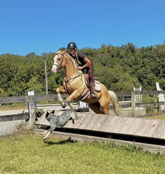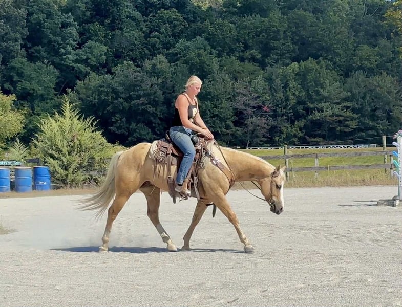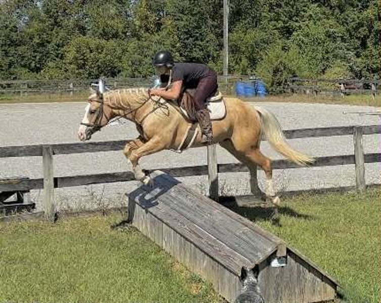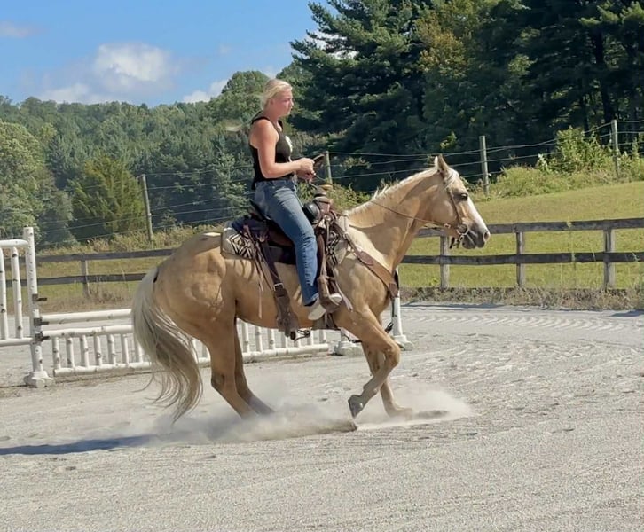 "AVAILABLE ON ONLINE HORSE AUCTION AT www DOT MagicHorseAuction DOT com BIDDING OPEN NOW thru TUESDAY | October 14TH! - BUY IT NOW AVAILABLE! *Final price will be determined on auction site* CONSIGNOR CONTACT INFO: Roni Renee Turner 610-806-2613 LOCATION: Narvon, PA "“Freckled Intoxication” aka “Malibu” is a 5yr old, 15hh, APHA gelding, with a lush mane, beautiful palomino coat, and chocolate freckles all over his body. Mali is safe, reliable, and Mr. Personality! He is an in your pocket type of dude with loads of character. Malibu can do it all, and he is ready to be your best friend! Do it all, and do it safely! In the barn, he has zero bad habits. He can live in or out, goes out with others and can live alone. He has no bad stall habits and is quiet while stalled. He stands on the cross ties to be groomed, tacked, bathed, etc. He straight ties to the trailer to get ready. Mali is a happy go lucky guy, and loves attention. He is safe with kids and dogs running around him, cows standing with him, you name it. He is totally unbothered and knows how to take a joke! He is an easy keeper with a simple diet, no maintenance and no supplements. He is good for the vet and farrier, and can wear shoes or go barefoot. He walks up to you in the pasture and is easy to catch. He likes being around people and will make you giggle with his silly personality. Malibu loves trail riding. He will lead, follow, go alone and in groups. He has a nice steady walk pace, and will trail ride on the buckle all day long. He is safe with traffic, bikes, strollers, wildlife and doesn’t mind my dogs trailing his heels. He crosses logs, rocks, water, and will wait for you at the porta potty. He would make a great camping partner or fox hunter. He even has the personality of a husband horse. He is always up for a good adventure, pack your saddle bags full of beer and go enjoy your ride. Malibu rides western, english, and bareback. He is soft in your hands and rides in a simple snaffle, or even a halter and lead rope! His gaits are comfortable and uphill. He has smooth transitions and listens nicely to your cues. He is a blast to ride, and the same horse every ride. Mali is the safe horse that your kids can go jump on in the pasture and he will take care of them. In the ring, Mali will walk, trot, canter, knows his leads, and loves to jump. He will ride collected or on the buckle. Malibu backs up nicely, pivots, side passes, neck reins, moves off of your leg, and you can ask for a big whoa, or bring him down smoothly through the gaits. He shows a lot of potential for ranch classes, low level reining fun stuff, cows, western dressage and more. He trots nicely through ground poles and is careful of where he puts his feet. He will ride off of your seat, or voice commands. Mali is forgiving and doesn’t get upset if his rider is off balance. He is just always a happy guy and enjoys every ride. Malibu enjoys jumping too! He will pop over tiny cross rails gently, or jump larger jumps and cross country fences too! He is a natural over fences and is very good with distances. He does not get hot or forward while jumping. You’ll see how honest he is in the clips of my pup jumping the cross country jumps with us. Malibu is a beautiful mover, and could go dabble in low level dressage, eventing, or maybe you just want a horse that will take care of you while you work on yourself! No matter what direction you want to take him in, he is happy to do it, or go have fun and do IT ALL!!!!! Malibu is registered with APHA. He is sired by “Intoxication” who is a beautiful stallion who has points in halter and western pleasure, who goes back to “Mighty Awesome”, a stallion who was known for his championship breeding and impact on APHA. On Mali’s bottom side, back in his lines you will see “Sonny Dee Bar”, a famous stallion who is a leading sire of show horses, known for producing great dispositions and natural talent. He was inducted into the AQHA Hall Of Fame in 2003. Malibu’s breeding speaks for itself, and has created an amazing all around boy. No matter what you are looking to do, Malibu is ready to be your forever partner and do it with you. I have really enjoyed my time with this boy. He is currently set up to head in absolutely any direction. Not to mention, he is easy on the eyes! If Malibu sounds like a good match for you, please don’t hesitate to reach out for further information!!! Shipping can be arranged anywhere.