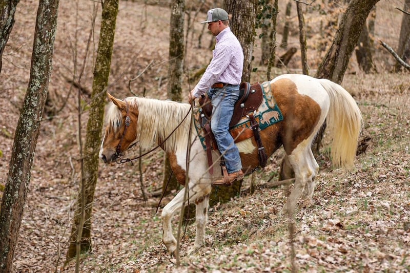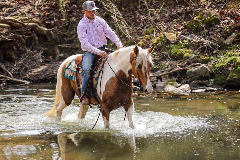 ⚜️𝓽𝓱𝓮 𝐆𝐎𝐋𝐃 𝓢𝓮𝓵𝓮𝓬𝓽⚜️ Happening now thru MONDAY | MARCH 23rd - Available EXCLUSIVELY on HorseBid's website! For more details and to register visit: www.Horsebid.com CONSIGNOR CONTACT: J&S Livestock 931-698-7159 or 931-242-7226 LOCATION: Santa Fe, TN BREED: Paint REGISTERED: No REGISTERED NAME: PC COLOR: Palomino and white HEIGHT: 15.1 AGE: 6 GENDER: Gelding PC, a stunning yet classy palomino and white gelding standing 15.1 hands tall and 6-years-old. This gelding is what trail dreams are made of and is the total trail horse deluxe package. If you are looking for something safe, steady, and reliable to take on a nice quiet trail ride to what might turn into even the roughest, sketchiest trails- without hesitation PC will be your guy. He will wade through the creeks, cross over logs, and take you up or down some pretty steep ground, while doing it slowly and safely. He has such a puppy-dog personality, so sweet and kind. He loves attention and will meet you at the gate every-time to be petted on, which makes him pretty darn easy to catch, as well. He will ride out alone, or in a group. He does good with noisy traffic, deer running through the woods, and riding through cattle. To say the least, exposure is something this guy has covered- making him an easy mount to enjoy and have fun on, while being able to feel safe, comfortable, and confident. Pc saddles great, trailers nicely, is good for the farrier, and enjoys getting bathed. He has quiet manners and would be easy for anyone to get along with. He is 100% sound and has a recent PPE. For any further information or questions please feel free to reach out. Bailey 931-242-7226 or JT 931-698-7159.