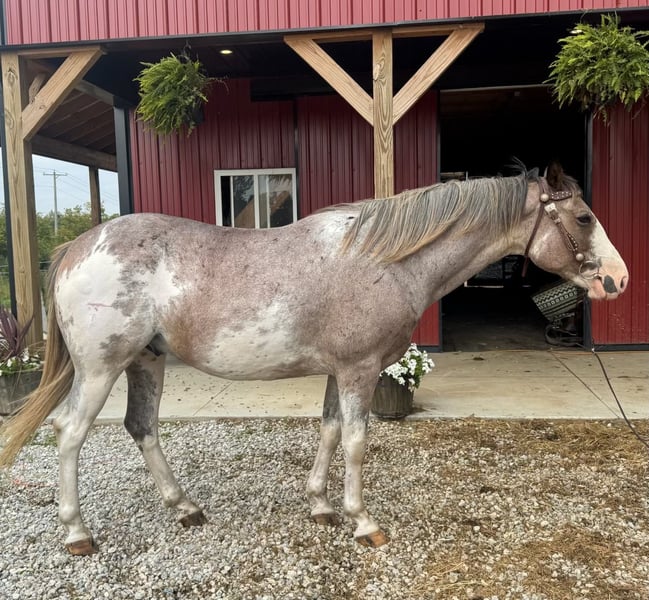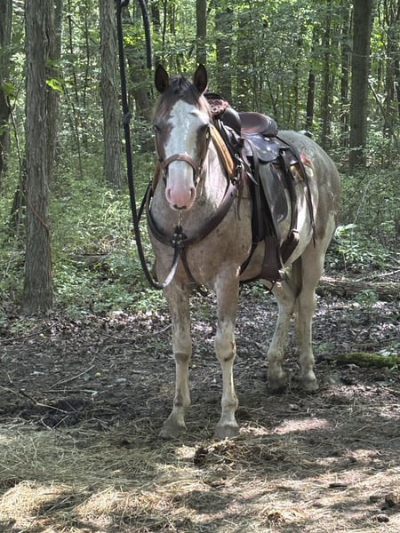 "AVAILABLE ON ONLINE HORSE AUCTION AT www DOT MagicHorseAuction DOT com BIDDING OPEN NOW thru TUESDAY | October 14TH! - BUY IT NOW AVAILABLE! *Final price will be determined on auction site* CONSIGNOR CONTACT INFO: McKenzie Cramer 330-307-0323 LOCATION: Mantua, OH "Rambo" is a 5 yr old Sabino crossbred gelding that stands a stout 15.1 hands tall. He is well started and has been trail ridden and ridden in the arena. Lopes circles both ways, has a good stop, side passes and backs up. A nice young gelding with a bright future. He needs a job and is ready and willing to work for you.