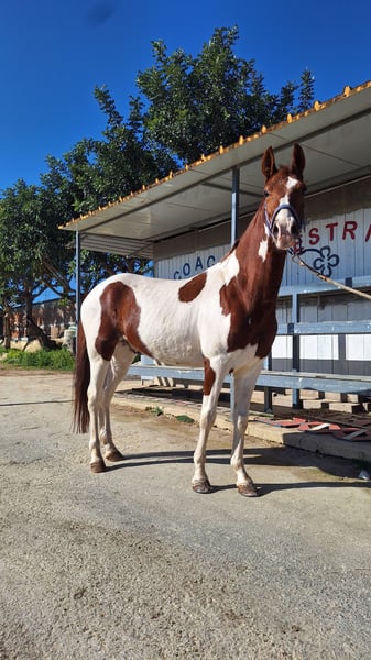 Splendido American Paint Horse castrone Documenti italiani , nato nel 2020, ideale per appassionati di equitazione e discipline artistiche. Questo giovane stallone, alto circa 155 cm al garrese, si distingue per il suo carattere equilibrato e la sua versatilità. La sua colorazione Tovero, che combina tutti i colori tipici di questa razza, lo rende un vero spettacolo anche dal punto di vista estetico. Addestrato e ben lavorato nell’ambito dell’equitation, si presenta come un cavallo molto ben educato, con un buon temperamento e una buona predisposizione al lavoro in maneggio. La sua conformazione e il suo carattere lo rendono adatto sia a cavalieri esperti che a chi desidera iniziare un percorso nel mondo dell’equitazione artistica o del dressage. Perfetto per chi cerca un compagno affidabile, versatile e con un’ottima presenza, questo American Paint Horse rappresenta un’opportunità unica per chi desidera investire in un cavallo giovane, ben educato e pronto a affrontare nuove sfide.