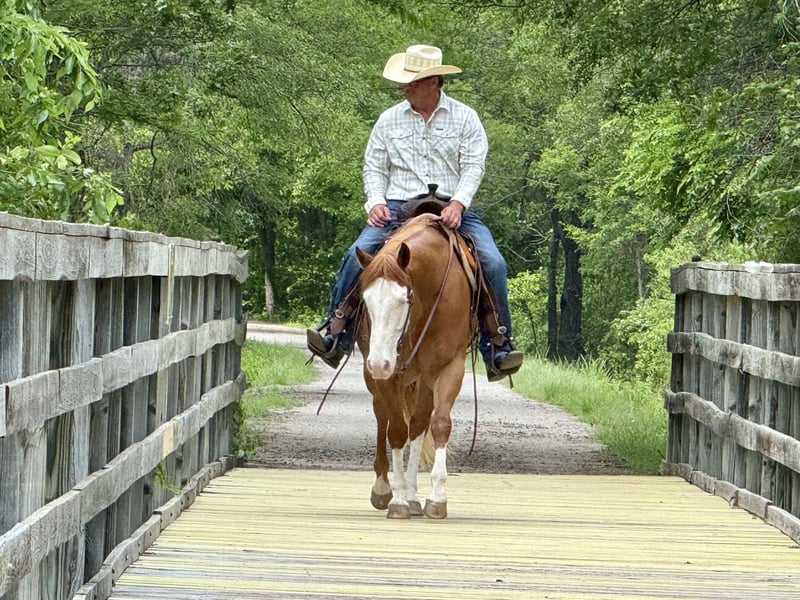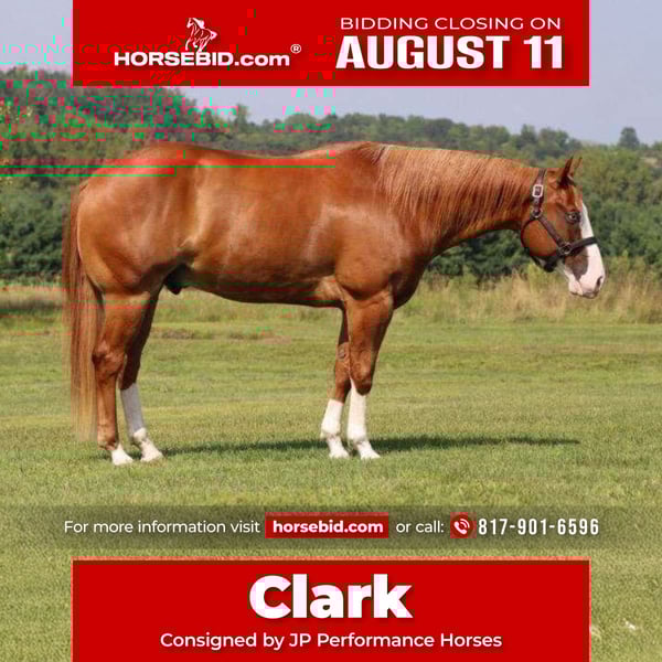 ⚜ The HERITAGE Classic ⚜ Happening now thru MONDAY | AUGUST 11th - Available EXCLUSIVELY on HorseBid's website! For more details and to register visit: www.Horsebid.com CONSIGNOR CONTACT: JP Performance Horses 817-901-6596 LOCATION: Weatherford, TX BREED: Paint REGISTERED: Yes REGISTERED NAME: JBH Over the Moon COLOR: Sorrel Overo HEIGHT: 15.1 AGE: 7 GENDER: Gelding Clark - The Ultimate All-Around Gelding Clark is the kind of gelding every barn needs-versatile, dependable, and ready to check all the boxes no matter what you're looking for. Standing a solid 15.1 hands and weighing in at 1300 pounds, this striking 7 year-old turns heads with four white legs and a bold bald face. But it's not just his looks that make him special-he's as kind and gentle as they come, always meeting you at the gate and eager to be your partner. We've used Clark for just about everything: moving and doctoring cattle, long trail rides, turning back in the cutting pen, and arena work. He's always up for the job, no matter the task. Whether you're headed out on an all-day ride or just looking for a quiet evening in the arena, he stays steady, willing, and consistent from start to finish. He would make an excellent Ranch Trail show horse. He has all the maneuvers and training to truly excel in the show pen. He's been thoroughly tested in and out of the arena-traffic safe, water crossing, and totally unbothered by the trail. He's also been lightly started on the head side, roping the hot heels and has tracked a few slow steers. Recently, he's been turning back for cutters and giving a few lessons-he's truly the easiest-going horse on the place. Clark adapts to whoever is on his back, whether you just want to walk the trails or need a hard day's work done. Don't miss his video-watch him go bridleless, open gates, move cattle, and handle every obstacle like a pro. We're proud to offer this outstanding gelding to the public. With his size, shape, chrome, and gentle nature, Clark is one you'll enjoy every single day. Feel free to contact Jackie with JP Performance Horses to schedule a time to come see him or set up a time to FaceTime if you live far away! Shipping can be arranged anywhere!