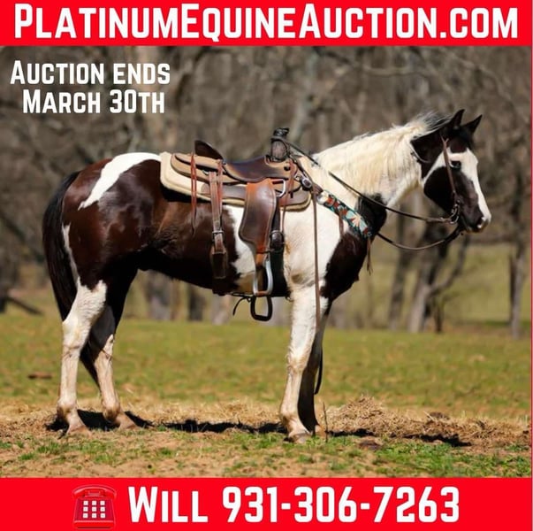 ONLINE AUCTION Place your bids at www.PlatinumEquineAuction.com Starting Bid $3500 Auction ends March 30th, 2025 Need a new saddle? Check out White Rock Saddles on our website or Facebook! Pablo is a 6yr old paint gelding standing 15.1h, is 6 years old and he checks every box for any trail rider out there. Pablo has been trail ridden extensively throughout Alabama, Tennessee and Kentucky while handling any obstacle with ease whether that be logs, ditches, deep water… it makes no difference! Pablo is built to please with very loving attitude and a heart of gold. We have pushed cattle, rode fences, swam in the deep water and just about anything else imaginable on Pablo. If you are looking for that special trail partner then give us a call Horses With Wisdom Will 931-306-7263 Located in Hampshire, TN. ONLINE AUCTION Place your bids at www.PlatinumEquineAuction.com Starting Bid $3500 Auction ends March 30th, 2025 Need a new saddle? Check out White Rock Saddles on our website or Facebook!