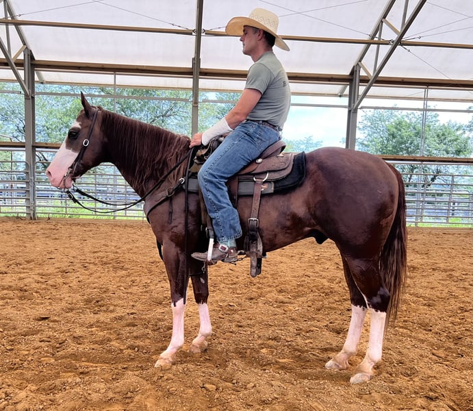 This gelding has experience in the rodeo environment. He confidently and patiently ties near back pens and bulls. He’s carried flags in grand entries, chased cattle out of the arena after roping events, and never misses a beat. Lippy has been used extensively to pony young horses as well as racehorses on the race track. Lippy thrives in an active, versatile lifestyle and is ready to go in any direction you choose — from ranch riding to performance events, or simply being your go-to partner.
