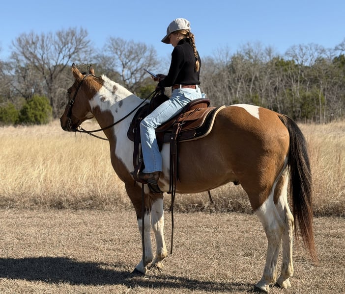 ♦️𝐍𝐄𝐖 𝐘𝐄𝐀𝐑'𝐒 𝑬𝒙𝒕𝒓𝒂𝒗𝒂𝒈𝒂𝒏𝒛𝒂♦️ Happening now thru MONDAY | JANUARY 12th - Available EXCLUSIVELY on HorseBid's website! For more details and to register visit: www.Horsebid.com CONSIGNOR CONTACT: Combs Quarter Horses 727-741-0559 LOCATION: Cleburne Texas BREED: Paint REGISTERED: No REGISTERED NAME: Dozer COLOR: Dun & White HEIGHT: 14.2 AGE: 8 GENDER: Gelding If you need the perfect go with the flow, point and shoot trail riding partner.. don’t miss out on Dozer! 8yr old dun and white gelding standing a stocky 14.2h tall makes him the perfect age and perfect size for absolutely anyone! From the little ones to the hubby.. beginners to experienced riders.. everyone is sure to love riding this beautiful boy! DISPOSITION: Dozer has been family raised and it shows. He loves people and attention. He loves being brushed and loved on and he is safe and gentle for the kiddos to learn to be around. Dozer is an old soul kinda guy with his laid back personality. Not spooky or silly acting. Very even tempered guy! Dozer has also been started driving. WESTERN EXPERIENCE: Dozer has been ridden by the little kiddos being ponied on the trails. He’s been ridden by the teens that like to get up and lope along the trails. He’s also been ridden a lot by the older adult riders needing that steady eddy kind of ride. Rides anywhere in the group without fuss or fight! Not bothered by wildlife or traffic. Doesn’t mind dogs or the pesky goat! ENGLISH EXPERIENCE: Dozer is happy under any kind of saddle. He’s got a super cute trot that’s easy to post to and the nicest little short lope you’ll really enjoy riding! Dozer will also go over the jumps! Take him to the local English shows and really get noticed! UPKEEP: Dozer is a very easy keeper. He stays fat on just free choice alfalfa hay. No supplements or maintenance required to keep him sound. UTD on vaccines, deworming and farrier. He is currently in shoes as he’s ridden in Rocky terrain. He can go barefoot just fine. TURNOUT: Dozer is great in a mixed herd or out alone. He’s not aggressive and he’s easy to catch. GROUND MANNERS: Dozer is like a big puppy dog! He’s very friendly and easy to handle. He’s been lead and handled by all ages and sizes. He’s also extremely easy to saddle and bridle. Stands great to wash. Stands single tied, crosstied and ties easily to the trailer for the trail rides. BAD HABITS/ VICES: Dozer has no bad habits or vices. No buck, rear, bolt, bite or kick. TACK: Dozer rides English, western or bareback. He will ride in a halter or a short shank snaffle. He’s easy to get along with. Feel free to reach out with any additional questions at 727-741-0559 text is best For references feel free to visit my personal group “Horses Amber Gourdon”