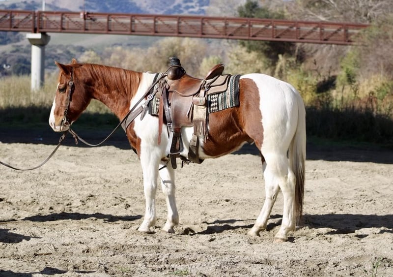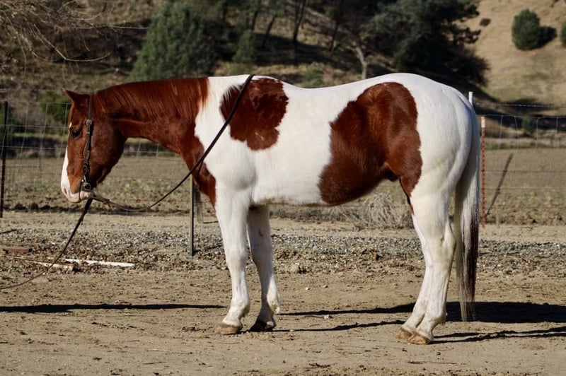 ONLINE AUCTION Place your bids at www.PlatinumEquineAuction.com Starting Bid $3500 Auction ends January 26th, 2025 Need a new saddle? Check out White Rock Saddles on our website or Facebook! Checkers is an adorable sorrel and white paint gelding, standing at 14.3 hands and is 8 years old. Checkers has spent many miles as a trail horse, and you can really see it in how confidently he navigates any terrain. He’s super sure-footed and will follow any trail you point him at, whether it’s steep hills or crossing water he handles it all like a champ! Checkers has seen the hustle and bustle of congested traffic and has been ridden down old country roads where he has encountered barking dogs,cyclists and pedestrians! In the arena, he has a nice, easy pace. He walks, trots, and picks up his leads and has nice smooth circles, and a nice sliding stop making him safe for riders of all levels. Plus, he’s been used for checking cows and gathering pastures, he’s fun and easy to ride out. Checkers loves trying new things too! He’s been tackling obstacles without a hitch, calmly crossing tires, bridges, and pool noodles. He’s just the best! Whether you want to ride alone or in a group, he’s your guy. He hauls well and travels like a dream. He is great in the pasture gets along well with other horses and will be just as comfortable in a stall setting. He ties well stands patiently while being groomed and tacked up. He is one of the easiest horses he’s safe, dependable, and just has this easy-going vibe that makes him a joy to be around. If you’re looking for a fantastic partner for some adventures, Checkers is definitely the one! You should reach out to Longhorn Ranch in Paicines, CA, and ask for Dina at 831-537-1915 to meet this special boy. You won’t regret it!