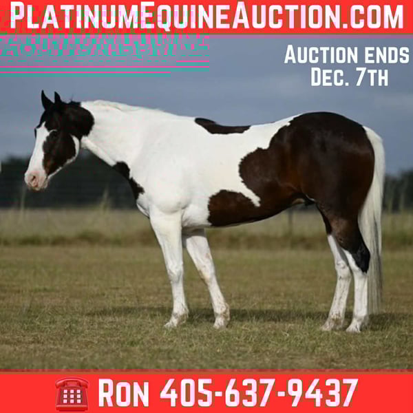 ONLINE AUCTION Place your bids at www.PlatinumEquineAuction.com Starting Bid $3500 Auction ends December 7th, 2025 Need a new saddle? Check out White Rock Saddles on our website or Facebook Waldo is the kind that’s seen the miles and knows his job. This 7-year-old black and white paint gelding has spent plenty of time out on the trails and working in the cow pasture, and he’s solid everywhere you take him. He’s sure-footed, confident, and dependable, whether you’re riding out alone or covering country with a crew. He’s also been used to doctor yearlings outside, and handles a rope and cattle with ease. The same horse every day, Waldo is all business when it’s time to work but easy to have around. Good to saddle, load, tie, and bathe, and ready to go to work or hit the trails tomorrow. Waldo’s broke, seasoned, and ready for whatever job you’ve got in mind. Located in Mount Vernon, TX. Contact Ron Hill Horses 405-637-9437 with any questions. ONLINE AUCTION Place your bids at www.PlatinumEquineAuction.com Starting Bid $3500 Auction ends December 7th, 2025 Need a new saddle? Check out White Rock Saddles on our website or Faceboo