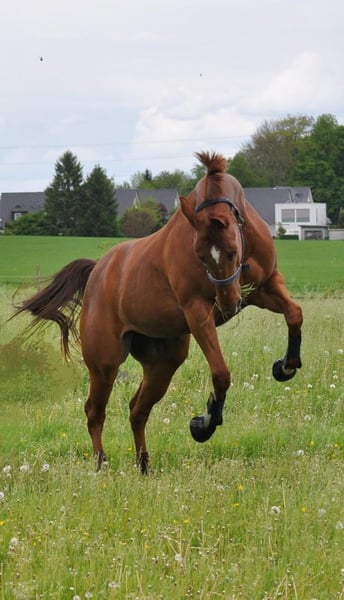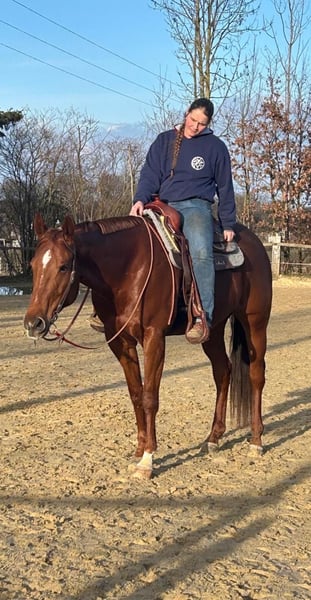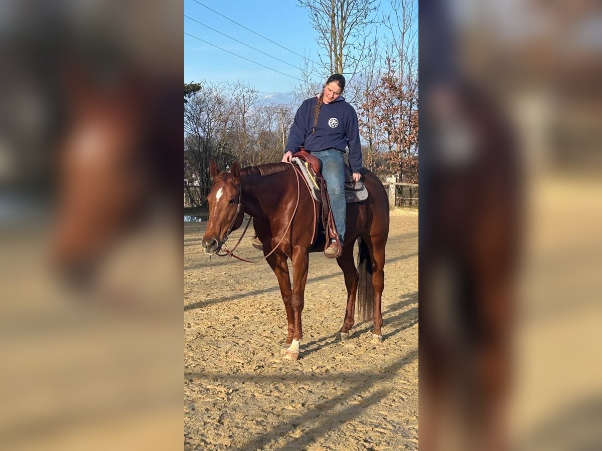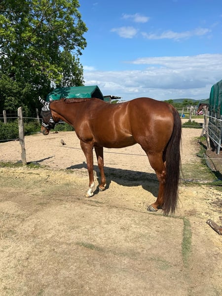 Zum Verkauf steht die zehnjährige Paint-Horse-Stute "Amazing Hot Diamond" (Crystal). Sie ist ein einfarbiges Paint in der Farbe Chestnut und stammt aus der Abstammung One Hot Krymsun x JJ Invest N Diamonds. Crystal besitzt volles Papier und befindet sich seit ihrem Absetzen in meinem Besitz. Ihre Ausbildung erfolgte ruhig und schonend, ohne übermäßigen Trainingsdruck. Zeitweise war sie im leichten Beritt, wo sie freizeitmäßig und in Ruhe weitergebildet wurde. Sie wird western geritten und gilt als unverbraucht, da sie bislang keine Turniererfahrung hat. Seit zwei Jahren wird sie regelmäßig mit Unterstützung einer Trainerin gearbeitet und zeigt eine konstante, positive Entwicklung. Unter dem Sattel reagiert Crystal fein auf die Hilfen und benötigt daher eine sensible, klare Reiterhand. Auf dem Reitplatz und in der Halle arbeitet sie konzentriert und stets bemüht mit. Manche Lektionen brauchen bei ihr etwas Zeit, um sie sauber abzurufen, doch mit Ruhe und Struktur setzt sie Aufgaben zuverlässig um. Aktuell wird sie auch von einem 14 jährigen Mädchen zuverlässig geritten, mit dem sie aufmerksam und motiviert zusammenarbeitet. In der Bodenarbeit ist Crystal sicher und gut gefestigt. Führen und Longieren funktionieren jederzeit problemlos. Durch regelmäßige Bodenarbeit verfügt sie über ein stabiles Fundament aus Vertrauen, Kommunikation und Grundgehorsam. Im Gelände zeigt sie sich grundsätzlich sicher und motiviert. In neuen oder besonders aufregenden Situationen orientiert sie sich gerne an einer erfahrenen Bezugsperson. Mit ruhiger, klarer Führung geht sie zuverlässig – auch alleine – voran. Im täglichen Umgang ist Crystal freundlich, unkompliziert und sehr menschenbezogen. Putzen, Führen und alltägliche Abläufe meistert sie entspannt. Aktuell ist sie vierfach beschlagen, was sie problemlos toleriert. In der Herde ist sie verträglich, jedoch eher ranghoch. Zurzeit steht sie nachts in der Box und tagsüber auf dem Paddock; im Sommer verbringt sie den Tag auf der Wiese. Aufgrund ihres Wesens und ihrer Ausbildung eignet sich Crystal ideal als zuverlässige Freizeitpartnerin in der Westernreitweise für Reiterinnen oder Reiter, die ein sensibles und motiviertes Pferd suchen. Für weniger erfahrene Reiterinnen oder Reiter kann sie geeignet sein, sofern ein Trainer unterstützend eingebunden ist und für klare Struktur sorgt. Dank ihrer Abstammung könnte sie auch für Zuchtinteressierte interessant sein. Eine Abgabe erfolgt ausschließlich in pferdegerechte und passende Hände.