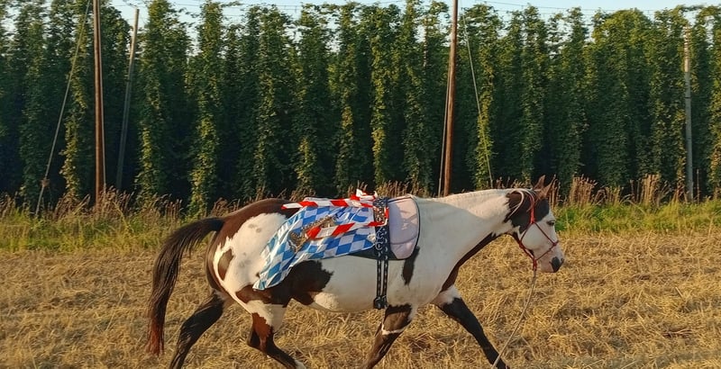 For sale is a 10-year-old, 148cm, barefoot, beautiful Paint mare with one blue eye. Well and very versatile ridden and trained: arena, trail, Garrocha, extreme trail - no problem for her. Additionally, she is fit in liberty work, round pen, knows some circus tricks, and has also participated in fire riding. Planning, noise bags, flapping gates - everything is top-notch. In handling, she is absolutely great, calm with the farrier (she just dozes off), loading is no problem, as is driving. She has no issues in unfamiliar environments. Loves water, enjoys swimming in rivers and lakes. She is familiar with trucks, cars, tractors with and without trailers, bicycles, motorcycles, highways, trains, and much more. The mare lives in a paddock, which is the best for her. In top shape, also suitable for long trail rides. She is PSSM1 positive, absolutely asymptomatic, has never had any issues. I only discovered this by chance some time after the purchase. Not a horse for beginners or children! She knows what she wants and also what she does not want, and she shows it. She occasionally tests the rider (not daily, but about every two weeks), and one must assert oneself. Then it works. Unfortunately, this is not suitable for me; I cannot cope with it in the long run. Very unfortunate, as she is a top horse. All equipment can be purchased separately: saddle, bridle, blankets, hoof boots, lungeing girth, etc. The horse can be delivered if not too far away. Please inquire only by email with your contact details - thank you.