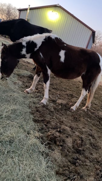 She has been haltered once until she got away and never let us catch her after we believe she used to be a breeding mare we got her from and auction accidentally bid on her I’m just not around enough to work with her to get her to a halter break point so if u wanna a project or breeding mare she’s the one for you