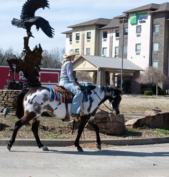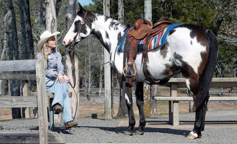 ONLINE AUCTION Place your bids at www.PlatinumEquineAuction.com Starting Bid $3500 Auction ends March 30th, 2025 Need a new saddle? Check out White Rock Saddles on our website or Facebook! Mercedes is an eye catching 13 year old mare with more color than a crayon box! At 14.3 hands she can easily pack anyone, big or small. Along with her drop dead gorgeous color, her good-natured personality radiates wherever she goes and grabs everyone’s attention. Mercedes goes down the trail with a level head and crosses water, logs, ditches and other obstacles with an unfazed attitude. She is easy to catch, groom, saddle, bridle, load and bathe. She also rides bareback and bridle-less! Mercedes is my go-to mount to use at the cow sale penning back, loading trucks and working gates. She has an impressive one-hand neck rein, moves off of leg pressure well and will stay collected when asked. Mercedes doesn’t have the typical mare-ish attitude, she gets along with others in the heard and has a calm, civil disposition. She is made right with clean, straight legs and is sure footed. Mercedes has been rode through town, at the lake, and even made an appearance at the nursing home to visit the residents. Whether you are taking a stroll through town, easing down the trail or putting in a full days work Mercedes is sure to fit the bill and capture your heart! Watch her full Youtube video, feel free to reach out with any questions, and arrange a visit or a FaceTime with Mercedes Contact Lacey Wilf 501-940-8704 Located in Quitman, AR. ONLINE AUCTION Place your bids at www.PlatinumEquineAuction.com Starting Bid $3500 Auction ends March 30th, 2025 Need a new saddle? Check out White Rock Saddles on our website or Facebook!