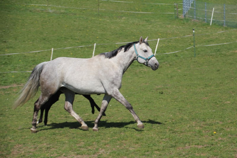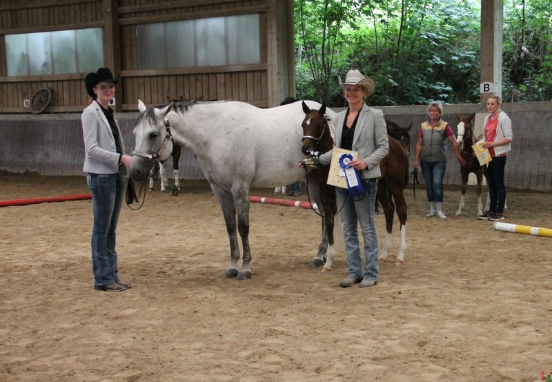 "Rita" is a well-bred, double-registered broodmare (AQHA/APHA) with a great building and the best movement potential. It is registered in studbook 1 of the PHCG and the DQHA. In 2019 she became reserve winner at the DQHA Federal Mare Championships in Aachen and successfully completed the PHCG mare performance test in Stoßberg in 2021. She has brought us 4 wonderful premium foals so far and is again pregnant for a June 2023 foal by our proven Paint Horse stallion GCC Lets Talk Cash. Two full siblings (fillies) and the two double registered colts of SQ Justified can be seen in the pictures. Born in 2020, the SQ Just A Modern Cowboy has already achieved Futurity victories and Euro Paint medals. Rita has a basic western education and can be ridden recreationally. She is given away pregnant due to breeding change. It is 6 panel n/n tested. X-Rays from the 2017 import are available and without complaints!