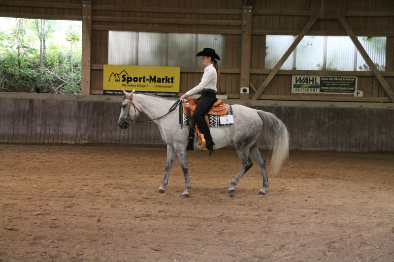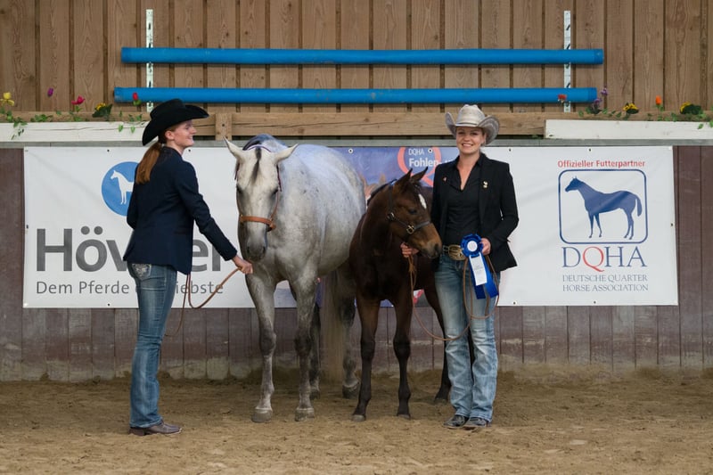 "Rita" ist eine top gezogenene, doppelt eingetragene Zuchtstute (AQHA/APHA) mit tollem Gebäude und bestem Bewegungspotential. Sie ist im Stutbuch 1 des PHCG und der DQHA eingetragen. 2019 wurde sie Reservesiegerin beim DQHA Bundesstuten Championat in Aachen und absolvierte 2021 die PHCG Stutenleistungsprüfung in Stoßberg erfolgreich. Sie brachte uns bisher 5 wunderbare Prämienfohlen und ist wieder tragend für ein April 2026 Fohlen von unserem bewährten Paint Horse Hengst GCC Lets Talk Cash. Drei Vollgeschwister (Stutfohlen) und die beiden doppelt registrierten Hengstfohlen von SQ Justified sind auf den Bildern zu sehen. Der 2020 geborene SQ Just A Modern Cowboy hat bereits Futurity Siege und Euro Paint Medaillen erreicht. Rita hat eine Basisausbildung western und kann freizeitmäßig geritten werden. Sie wird tragend wegen Zuchtumstellung abgegeben. Sie ist 6 Panel n/n getestet. X-Rays vom Import 2017 sind vorhanden und ohne Beanstandungen!