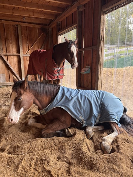 Gelieve alles goed te lezen en alleen te reageren als alles echt klopt! Plaats boven prijs! Als alles echt klopt, geef ik mijn Paint merrie (o.P.) in de allerbeste handen en voor een diervriendelijke verzorging. Ze is 13 jaar oud, ongeveer 1,60 m en een heel bijzonder paard. Ze is een absoluut ranglaag en sociaal paard dat graag een vriendje wil voor de vachtverzorging. Tegenover mensen is ze echter vaak een echte „grumpy horse“ met afstand- en nabijheidproblemen. Daarom alleen voor ervaren en consequente handen, niet voor kinderen – en zeker niet voor mensen die haar met druk en macht willen „overtuigen“. Bij druk reageert ze met verhoogde grumpy-aanvallen. Omdat haar gedrag bij stalling verslechtert, geef ik haar alleen... -> in een open stal, -> met een eerlijke soortgenoot/paardenvriend, -> voldoende lig- en schuilmogelijkheden en -> 24/7 toegang tot hooi. Ik wens haar een „voor- altijd- thuis“ – ze mag geen wisselpaard worden! Ze heeft enkele problemen, daarom heeft ze een lange pauze gehad en wordt ze als beperkt berijdbaar verkocht. Ras typisch is ze soepel en positief in de buigproef. Begin dit jaar had ze problemen met een negatieve palmarwinkel / hoefbeenvorstand van het voorbeen, die lange tijd niet was vastgesteld. Door de verkeerde belasting ontwikkelde zich een ontsteking van de peesschachten aan beide zijden van de buigpees. Sinds augustus loopt ze weer kreupelvrij. Met kunststofbeslag gaat ze nu goed om, zodat ze sinds een paar weken weer langzaam in het terrein wordt bereden. Ze zal geen 100% betrouwbaar rijpaard meer kunnen worden en is ook niet geschikt voor de fokkerij. Geen gewichtsträger! Voor binnen- en buitenritten, rijden op zacht terrein of met veel bochten, of voor het longeren, is ze vanwege haar zachte pezen niet (!) geschikt. Op harde ondergrond en rechte stukken is ze echter een prachtige partner voor ontspannen buitenritten. Ze wordt western gereden. In het terrein is ze veilig en een absolute betrouwbare partner: ik rijd haar altijd bitloos. Ze loopt zelfstandig, ook op volledig onbekende routes, met of als handpaard, en was ook na lange pauzes altijd braaf en niet schrikachtig. Over het algemeen is ze meer van de rustige soort en wat lummelig. Ze is zeer intelligent en grappig. Ze kan enkele kunstjes en zou zeker enthousiast zijn over circuslektionen en meer. We gaan alleen te voet met halster wandelen. Van alledaagse geluiden tot kettingzagen en bouwlawaai – ze heeft tot nu toe niets snel van de leg gebracht. Bij de hoefsmid en ook bij de dierenarts was ze altijd braaf. Haar gedragsmatige eigenaardigheden heeft ze zich tot nu toe altijd voor ons bewaard ;)... Verladen? Voor eten doet ze bijna alles ;)… Ze is wel een tijdje niet vervoerd, maar ik heb regelmatig verladings-oefeningen met haar gedaan. Regelmatig gevaccineerd, ontwormd en bij de hoefsmid (4-punts kunststofbeslag). Tanden gecontroleerd. Actueel bloedbeeld. Chiropractische check begin 2025. Het is geen noodgeval – ik zoek haar het perfecte „voor- altijd- thuis“! Als je je kunt voorstellen om mijn Paint merrie een 5***** thuis te geven en haar bijzonderheden te respecteren, hoor ik graag van je – graag met volledige naam en een korte introductie van de toekomstige thuisbasis ;). Compleet accessoires, inclusief een passende westernzadel, kunnen mee worden gekocht.