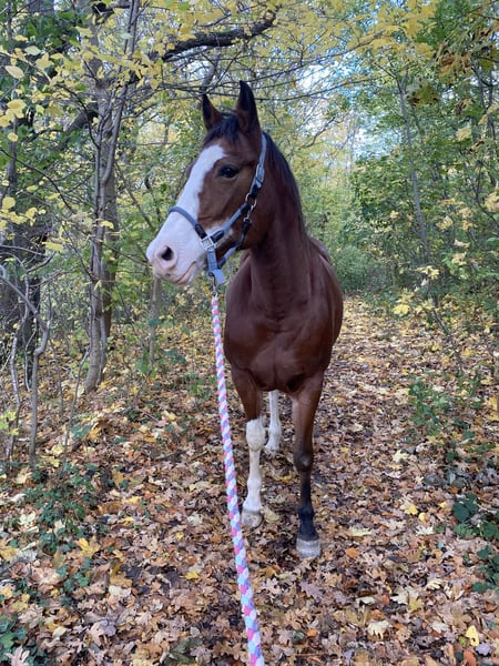 Veuillez tout lire attentivement et ne me contacter que si tout vous semble parfaitement en ordre ! Priorité au bien-être plutôt qu’au prix ! Si tout correspond, je confie ma jument Paint (non montée) à des mains expertes et pour une garde respectueuse de ses besoins. Elle a 13 ans, environ 1,60 m et c’est un cheval très spécial. C’est une jument très calme et sociale, qui aimerait beaucoup avoir un compagnon pour le pansage. En revanche, elle peut parfois être une vraie « grumpy horse » avec l’humain, ayant des difficultés avec la proximité et la distance. Elle n’est donc pas adaptée aux enfants, ni à des personnes qui voudraient la « convaincre » par la force ou la pression. En réponse à la pression, elle peut réagir par des accès de grumpiness plus marqués. Son comportement s’aggrave en box, c’est pourquoi je ne la confie qu’en : -> paddock extérieur, -> avec des compagnons équins compatibles, -> suffisamment de foin, de refuges et de possibilités de retrait, -> accès 24/7 au foin. Je souhaite lui trouver un « pour toujours » – elle ne doit pas devenir un trophée ou un objet de collection ! Elle a quelques « points sensibles », ce qui explique sa longue pause et sa vente en conditionnelle pour la reprise de la monte. Typiquement, elle est souple dans le filet et positive lors de la flexion. Au début de l’année, un angle palmaire négatif / une mauvaise position du boulet du pied antérieur lui ont causé des problèmes, longtemps non diagnostiqués. La surcharge a entraîné une inflammation des tendons fléchisseurs des jarrets des deux côtés. Depuis août, elle ne boite plus. Avec des fers en résine, elle s’en sort bien, et elle a repris doucement le travail en extérieur depuis quelques semaines. Elle ne pourra plus devenir un cheval de sport à 100 % et n’est pas adaptée à la reproduction. Ce n’est pas un cheval porteur de poids ! Pour le travail en manège ou en carrière, sur terrain mou ou avec beaucoup de changements de direction, ou encore pour le travail à la longe, elle n’est pas adaptée à cause de la faiblesse de ses tendons. En revanche, sur terrain dur et en ligne droite, c’est une partenaire idéale pour des promenades tranquilles. Elle est montée en style western. En extérieur, elle est sûre et une partenaire de confiance : je la monte toujours sans mors. Elle avance seule, même sur des parcours inconnus, en main ou en liberté, et après de longues pauses, elle reste toujours calme, sans être peureuse. Elle a plutôt une nature tranquille et un peu pataude. Très intelligente et amusante, elle connaît quelques tours et pourrait être très intéressée par des exercices de cirque ou d’autres tricks. Nous ne faisons que des promenades en licol. Elle n’a pas été impressionnée par les bruits quotidiens, les tronçonneuses ou le bruit des chantiers – jusqu’à présent, rien ne l’a fait paniquer. Elle a toujours été sage chez le maréchal-ferrant et chez le vétérinaire. Son côté un peu caractériel, elle le réserve pour nous ;)… Pour la charger dans le van ? Elle fait presque tout pour une friandise ;)… Elle n’a pas été chargée récemment, mais je fais régulièrement des entraînements de chargement avec elle. Vaccinée régulièrement, déparasitée, ferrée avec un ferrage en résine (4 points). Dents vérifiées et en bon état. Bilan sanguin récent. Visite chiropratique prévue début 2025. Ce n’est pas une vente d’urgence – je cherche pour elle un « chez-soi pour toujours » parfait ! Si vous pouvez offrir à ma jument Paint un logement 5 étoiles et respecter ses particularités, je serai ravie de recevoir votre message – merci d’envoyer votre nom complet et une brève présentation de votre projet d’accueil ;). L’équipement complet, y compris un selle western adapté, peut être acheté avec elle.