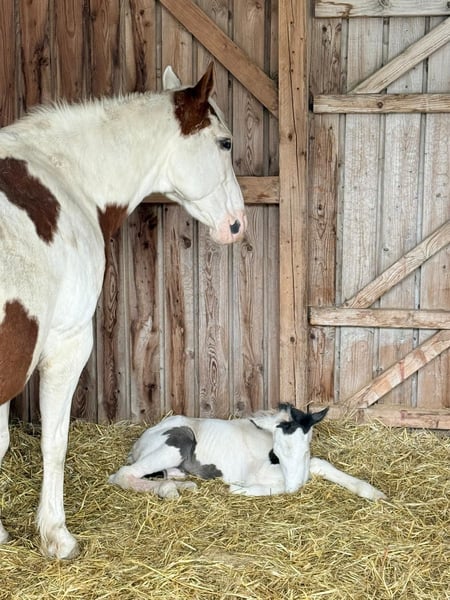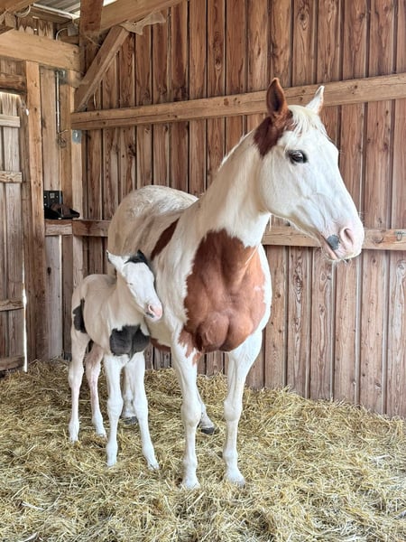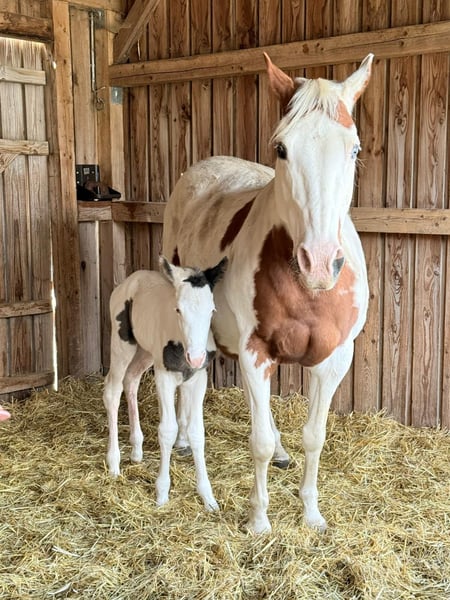 Cavalla American Paint Horse (PHCG) con puledro al piede in vendita