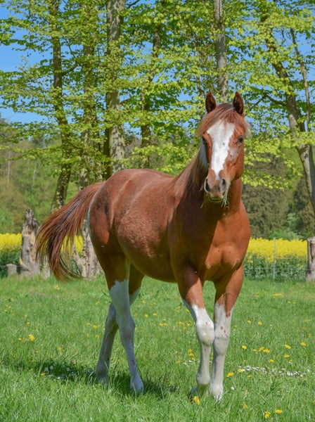 Hallo, sehr freundliche Paint Horse Stute " Indians Little Peppy - aka Peppy" mit korrektem Gebäude, solidem Fundament und einem unerschrocken und aufgeschlossenen Charakter sucht ab sofort jemand Neues in ihrem Umfeld. Sie wird später eine tolle Partnerin für Freizeit und Sport. Sie ist dem Menschen sehr zugewandt und freundlich. Daten zu Peppy: Rasse: American Paint Horse Geschlecht: Stute Geburtsdatum: 02.05.2024 Farbe: Sorrel Tobiano 7 Panel N/N über Eltern Geschätztes Endmaß: ca. 150-152 cm Dicke und viel Mähne, stabil gebaut. Abstammung: Vater: Indian Bigstep, erfolgreich geshowt in Reining, Stockmaß 1,54 m Mutter: Charmed Witch josie, Stockmaß 1,47 m Peppy ist APHA registriert und das CoR liegt vor. Der Equidenpass vom PHCG ebenfalls. Die Bilder sind im Alter von genau einem Jahr. Die letzten 3 Bilder zeigen sie im Fohlen Alter vom 4 Monaten. Aktuelle Bilder folgen die Tage. Mutter ist ebenfalls vor Ort zu besichtigen. Sie ist gesund und wächst artgerecht auf. Ist regelmäßig entwurmt und dem Hufschmied vorgestellt sowie geimpft. Sie kennt altersgerecht alle möglichen und im Alltag notwendigen Dinge. Sie ist ebenfalls schmied-und verladefromm. Transport könnte organisiert oder übernommen werden. Sie kann auch weiterhin hier bei uns im Stall bleiben. Bei ernst gemeintem Interesse und Fragen gerne melden unter 01732090733. ☺️ Beste Grüße ☺️