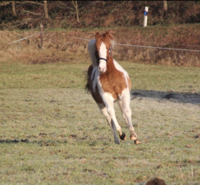 APHA Mare born April 2025 in Red Dun I am offering my little girl born in April 2025. She is very sweet and eager to learn new things, and she enjoys being pampered. The farrier and trailer loading are no problem for her, and she handles both very well. Her mother is my homozygous tobiano mare, Continental Bumblebee, standing at 150 cm. Her father is Jeannes Happy Light, measuring 153 cm, in a dunskin coat. She inherited the dun gene from him. She has papers from the APHA and a passport from the PHCG. I could also imagine Happy Bumblebee, or Hummel, as a wonderful family pony. We live in 49843. Price: €4,500 negotiable.