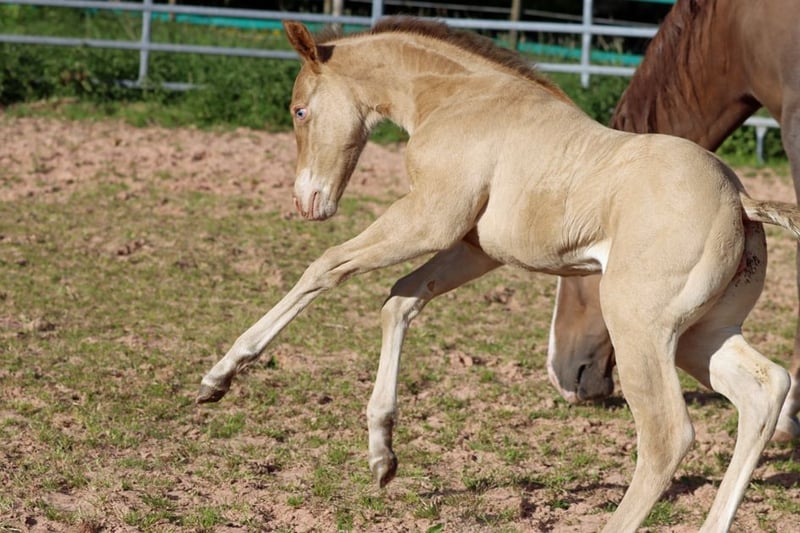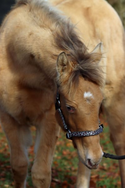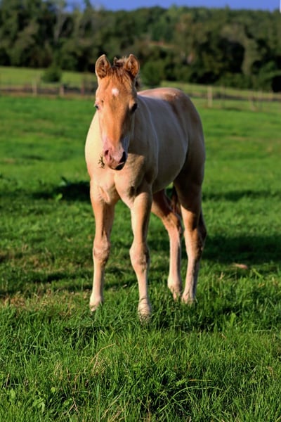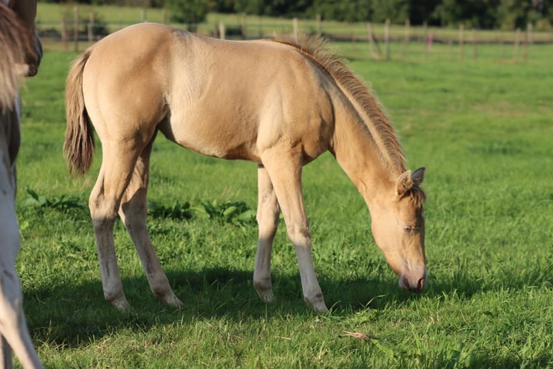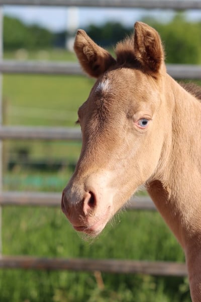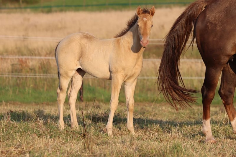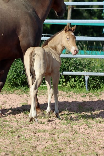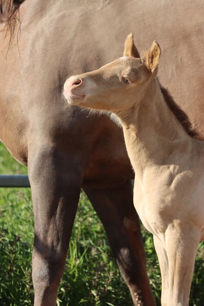 CHEYENNES VUDUGUNFIRE Amber Dun Champagne APHA Mare Born: 05/08/2025 Expected height approx. 153 cm 7 Panel N/N Ee Aa Dd CHch