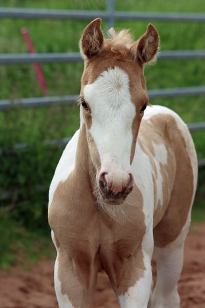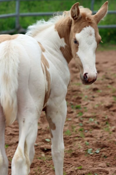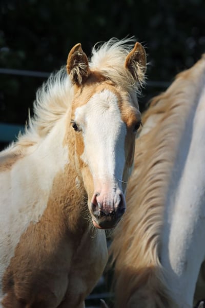CHEYENNES HARRAHS Palomino Tobiano APHA Stute Geboren: 20.05.2025 Endgrösse ca 155 cm 7 Panel N/N ee aa CRcr Tt