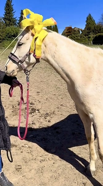 Pour des raisons personnelles, je cherche une nouvelle famille aimante pour ma jeune jument. Elle est née en juin 2023 (inscrite dans le passeport équin avec la date du 1.1.2023) et possède un passeport EQUI sans pedigree. Son père est un Quarter Horse, sa mère une jument Paint Horse. Elle mesure actuellement environ 1,45 m et devrait atteindre entre 1,50 m et 1,55 m à l'âge adulte. Côté caractère, elle est curieuse, proche de l'humain et très désireuse d'apprendre. Dans le groupe, elle occupe une position de dominée, elle est amicale et sociale envers ses congénères. Elle est actuellement en paddock libre dans un troupeau de juments, avec un pâturage 24/7 en été. Elle connaît le licol, la conduite, le pansage et de petites promenades. Le travail à la longe n’a pas encore été commencé, adapté à son âge. Sur le plan de la santé, elle est en pleine forme. En mars, elle a eu un abcès, qui s’est complètement guéri, seule une petite cicatrice reste visible. Elle est régulièrement contrôlée par un ostéopathe et soignée par le maréchal-ferrant. De plus, elle est vaccinée contre le tétanos et la grippe équine. Une inspection vétérinaire (AKU) peut être réalisée à la demande, à ses frais, si intéressé. Je souhaite pour elle une famille pleine de cœur, où elle pourra continuer à grandir tranquillement, entourée de personnes qui lui feront preuve de patience, de compréhension et de douceur. Vente uniquement à des mains aimantes et expérimentées dans le monde du cheval.