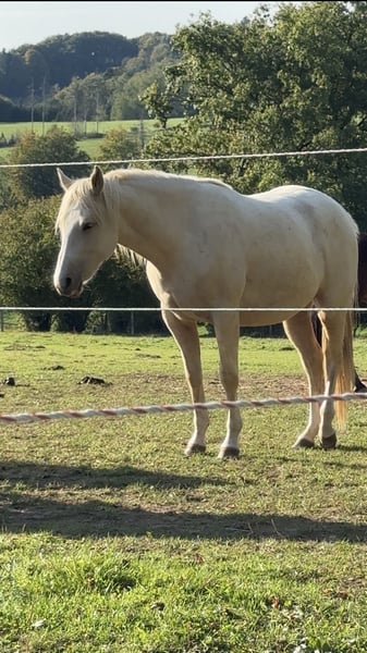For personal reasons, I am seeking a loving new home for my young mare born in 2023. Her sire is a Quarter Horse, and her dam is a Paint Horse mare. Currently, she stands at approximately 1.45 meters (about 14.1 hh) and is expected to reach around 1.50 to 1.55 meters (roughly 14.3 to 15.0 hh). She has a horse passport but no pedigree papers. In terms of temperament, she is curious, people-oriented, and eager to learn. She is lower in the herd hierarchy, friendly, and social when interacting with other horses. She is currently kept in an open stable in a herd of mares, with 24/7 pasture turnout during the summer. She is familiar with halters, leading, grooming, and small walks. Groundwork has not yet been introduced age-appropriately. Health-wise, she is fit. In March, she had an abscess that has fully healed; only a small scar remains as a cosmetic mark. She is regularly checked by an osteopath and attended to by the farrier. Additionally, she is vaccinated against tetanus and influenza and dewormed regularly. A pre-purchase examination (AKU) can be arranged at her own expense if interested. I wish for her to find a home with a caring heart, where she can continue to grow in peace and be surrounded by people who treat her with patience, understanding, and mindfulness. Rehoming only to loving, experienced horse people. If interested, please provide a meaningful message including where she is coming from, how her care would look, and whether you have experience with young horses. Please note that the mare’s description is based solely on my personal impressions and daily observations.