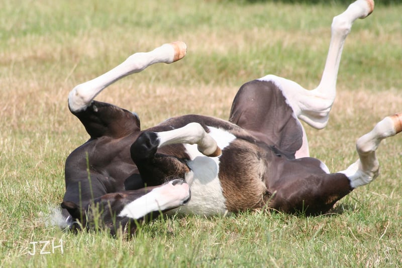Prawidłowo zbudowana klaczka Paint Horse. Równomiernie narysowany z 2 ciemnymi oczami. Ciekawy i jasny. Dorasta z większą liczbą źrebiąt. Homozygotyczny Tobiano. Być może również homozygotyczny dla czerni. 5 Test panelowy Z amerykańskimi dokumentami i paszportem PHCG. Rodziców można odwiedzić. Oba charakteryzują się doskonałymi właściwościami konia jeździeckiego. Zapytania prosimy tylko telefonicznie. 01757217229