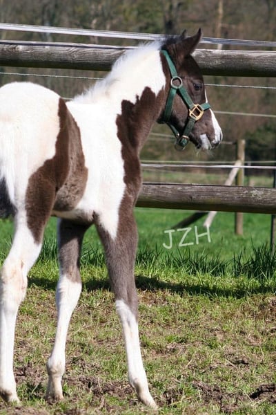 Correct gebouwd Paint Horse merrieveulen. Gelijkmatig getekend met 2 donkere ogen. Nieuwsgierig en helder. Groeit op met meer veulens. Homozygote Tobiano. Mogelijk ook homozygoot voor zwart. 5 Panel Test Met Amerikaanse papieren en PHCG paspoort. Ouders kunnen worden bezocht. Beide worden gekenmerkt door uitstekende rijpaardeigenschappen. Vragen kunnen alleen telefonisch. 01757217229