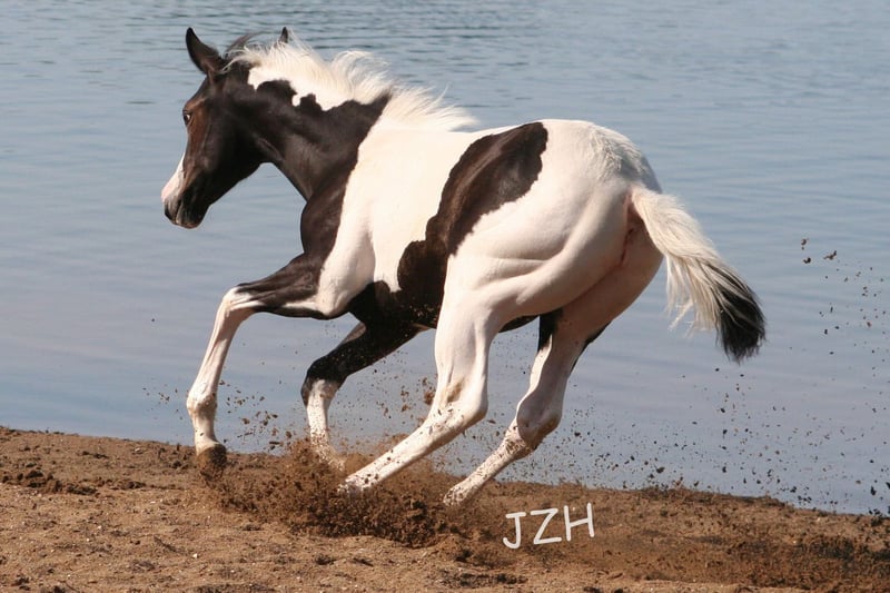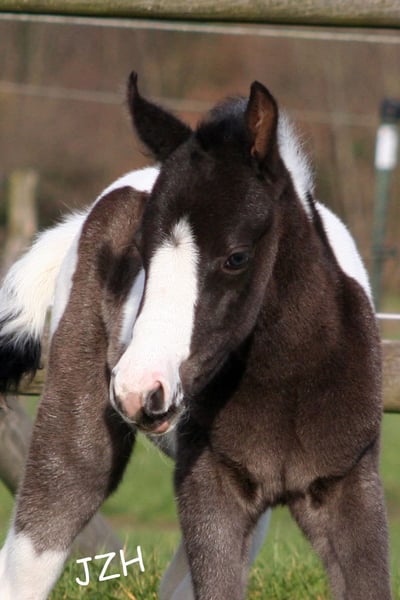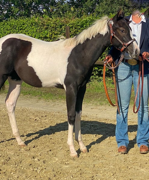 Puledra di Paint Horse di prima qualità. Marcata in modo uniforme con 2 occhi scuri. Curiosa e vivace. Cresce con gli altri puledri. Omozigote per il tobiano. Possibilmente anche omozigote per il nero. Test a 5 pannelli Con documenti americani e passaporto PHCG. I genitori possono essere ispezionati. Entrambi sono caratterizzati da eccellenti qualità di cavallo da monta. Il sire è stato autorizzato dal PHCG. La madre è una cavalla di qualità PHCG. Si prega di chiedere solo per telefono. 01757217229