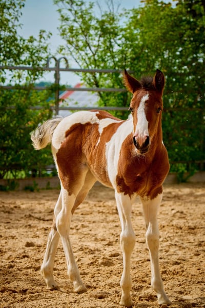 For sale is an exceptional Paint Horse mare born in 2023. With her impressive spotting, she is a real eye-catcher and stands out everywhere. This charming lady not only impresses with her looks, but also with her size. With a height of 150 cm, she is the perfect horse for riders looking for a compact yet large horse. This mare is not only a talented cowhorse, but also a loyal and reliable partner. If you are looking for an exceptional horse with a lot of potential, you should not miss this Paint Horse mare. She is ready to share many wonderful moments with her new owner and to master new challenges together. Grows up in a species-appropriate herd. Original APHA paper and equine passport About parents N/N