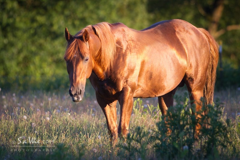 Paint Horse Stute *03/2023 Chestnut/Sorrel Für Katie suchen wir ein schönes Zuhause nach dem Absetzen im Herbst. Sire: Smartes little Cat (High Brow Cat, Doc Olena, Doc Bar, Smart little Lena, Poco Bueno) Dam: GM Jeanys Gotta Gun (Gotta West Coast Gun, Katie Gun, Hollywood Dunnit, Topsail Whiz) Katie ist die Enkelin von High Brow Cat. Er ist der führende Cutting-Horse-Vererber aller Zeiten, dessen Nachkommen bis heute mehr als 86 Millionen US-Dollar verdient haben, darunter acht NCHA Open Futurity-Titel. Katie wächst im Herdenverband auf, wird regelm. entwurmt und dem Schmied vorgestellt. Sie hat eine Lebensversicherung die mit übernommen werden kann. Sie bekommt APHA Papier und E-Pass (PHCG). Katie ist aufgeweckt, zeigt gute Bewegungen und hat einen schönen Körperbau. Außerdem hat Sie ein halbblaues Auge. Sie wird ein geschätztes Endstockmaß von 148-152cm bekommen. Am Besten Live anschauen kommen. Katie freut sich mit ihrer Mutter und Ihrer Oma, die ebenfalls bei uns steht. Besichtigung ist nach Terminabsprache möglich. Melden Sie sich. Auch für weitere Bilder und Info`s. (Bilder Ihrer Eltern und Großeltern am Ende der Galerie)