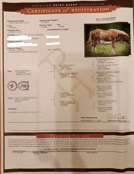 Offering paint horse mare born 6/2021. Gentle is a highly versatile athlete, already successful in several disciplines including In-Hand Trail (IHT), Halter, and Longe-line. She started competing under saddle last year with one qualification and the final round, ended with Title of Czech Champion of HUS, also one succesfull start in Working equitation discipline. Loves to jump 🤩 Best partner for groundwork and liberty work. Very calm, intelligent. For ambitious rider. Proven broodmare – had one foal and was an amazing mother. Full health history available. X-rays from 2023 are on file. We welcome a detailed pre-purchase exam by your own veterinarian prior to purchase. Many photos and viedos from the training and competitions via PM. Located near Prague, CZ 16🥕🥕🥕