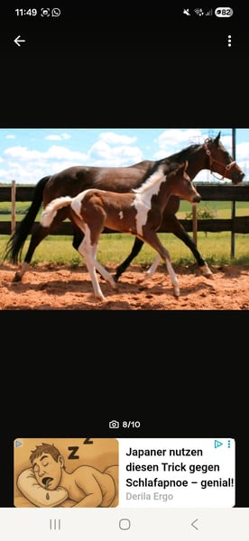 Vor dem Sommer zum Sonderpreis: Ein absoluter Eyecatcher. Geboren 09.05.2021, von Apaches Lightning Bar (durch seine Adern fließt feinstes Cowhorse-und Foundation-Blut), aus der Why me. Beide Elterntiere absolut rittig und charakterlich einwandfrei. Toffee überzeugt optisch mit ihrem kräftigen dennoch korrekten Körperbau. Charakterlich zeichnet sie sich durch ihre unerschrockene forsche Art aus. Sie kennt Kinder, Hunde, Autos, Traktoren und große Maschinen. Sie ist bestens sozialisiert und wurde bisher robust gehalten, steht mit ihrer gleichaltrigen Spielkameradin in einer größeren Herde zusammen. Selbstverständlich regelmäßig entwurmt, geimpft und dem Hufschmied vorgestellt. Steht brav beim Beine-Abspritzen sowie angebunden beim Putzen und Hufe geben. Halfterführig auch alleine von der Herde weg. Die Nachkommen unseres Hengstes zeichnen sich durch eine sehr menschenbezogene Art aus. Papiere ausgestellt von der American Painthorse Association und Equidenpass vom Painthorse-Club Germany.