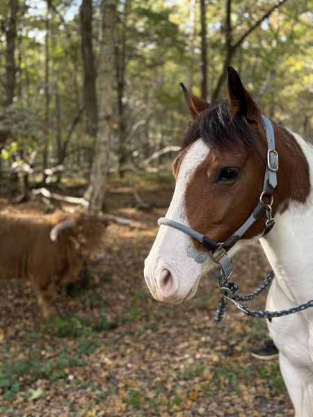 🦄 For Sale: Smart G Star Lizzy (2020) – Bay Tobiano APHA Mare 🦄 Are you looking for a gentle, sweet, and reliable horse? Lizzy is a kind and trustworthy mare searching for her new best friend! ✨ Why Lizzy is special: • Very calm and well-behaved during outdoor rides, farrier visits, veterinary checks, and grooming • Can be ridden with or without a bit/saddle • Suitable for children with basic experience and somewhat nervous riders, as well as adults • Active, eager to learn, and never does anything unexpected • Cutting trained, making her ideal as a recreational Western horse. Please note: Not suitable for intensive training or competitions involving stops, spins, or quick turns. 🐴 Practical: • Knows her herd outside 24/7; currently stabled • Regularly dewormed and vaccinated • 5-panel N/N tested by her owners • Possibly suitable as a children's pony • Trailer loading only • 13.5 hh (1.37 m) 💌 Lizzy deserves a loving home where she can be as happy as she is with me. Send a message and tell us how she would fit into your life!